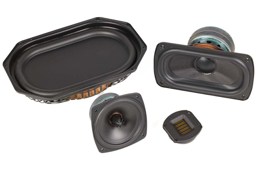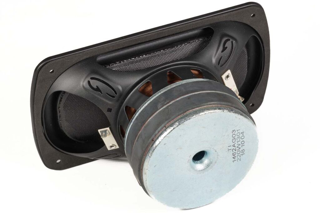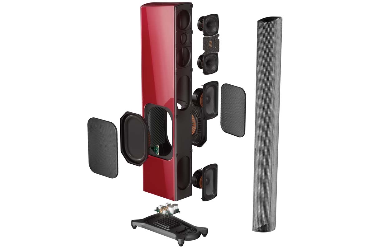 Bestückung: 1 x HVFR(High Velocity Folded Ribbon)-Tweeter, 2 x 4,5“-Mitteltonkonus, 2 x 5/9“-Tieftöner, 2 x 6,75/8“-Passivmembran