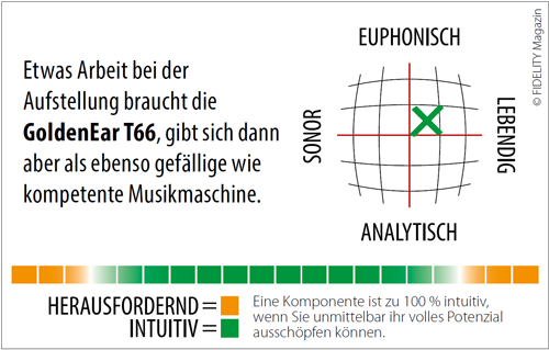 Etwas Arbeit bei der Aufstellung braucht die GoldenEar T66, gibt sich dann aber als ebenso gefällige wie kompetente Musikmaschine.