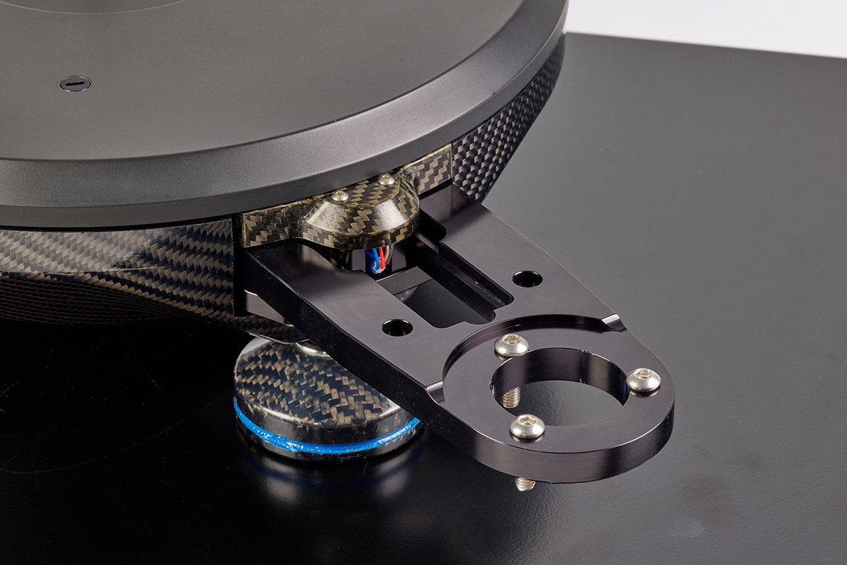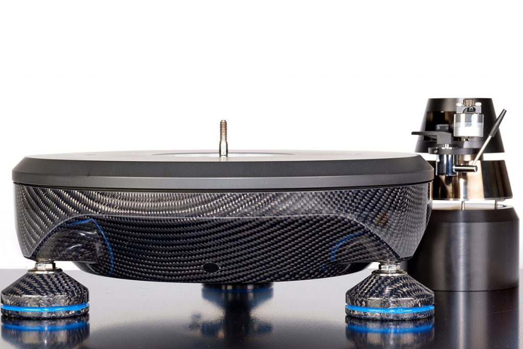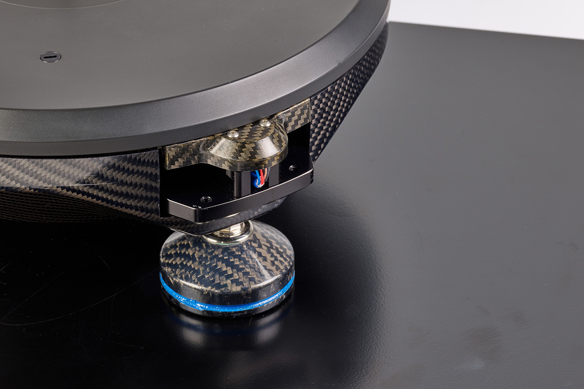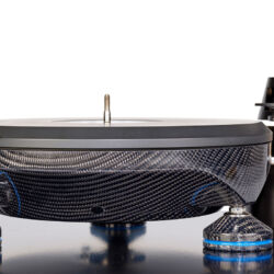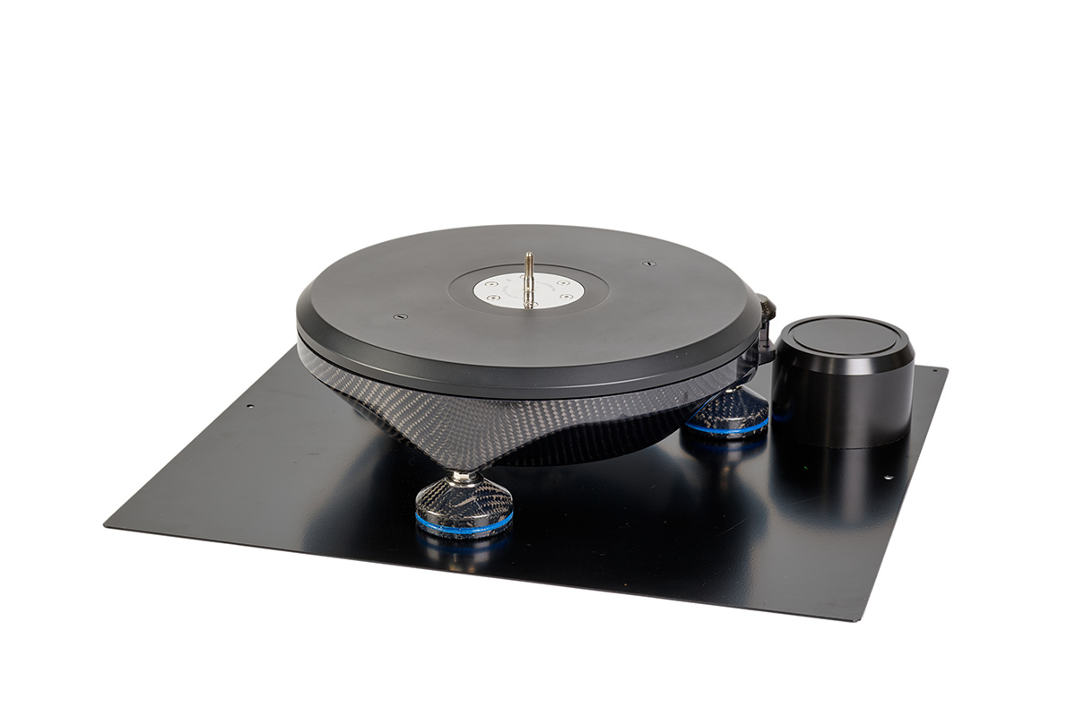 Das Ergebnis dieser Bemühungen ist ein Plattenspieler, der erst einmal viel zu klein daherkommt, um wirklich highendig sein zu können. Scheinbar. Obschon seine Struktur mit einem mit Kohlefaser ummantelten Aluminiumskelett die Idee des Leichtbaus verfolgt, bringt der Dreher letztlich solide zwölfeinhalb Kilogramm auf die Waage. Zudem handelt es sich nicht um eines der üblichen per Riemen oder String angetriebenen Laufwerke, sondern um einen waschechten Direkttriebler, eine Spezies, die seit den achtziger Jahren an Glanz verlor. Meiner Meinung nach aber nur, weil es viel leichter ist, einen kleinen Motor in eine Dose zu packen und einen Gummiriemen um den Teller zu legen. Sprich: gäbe es nur den Direktantrieb, hätten wir viel weniger Plattenspielerhersteller.