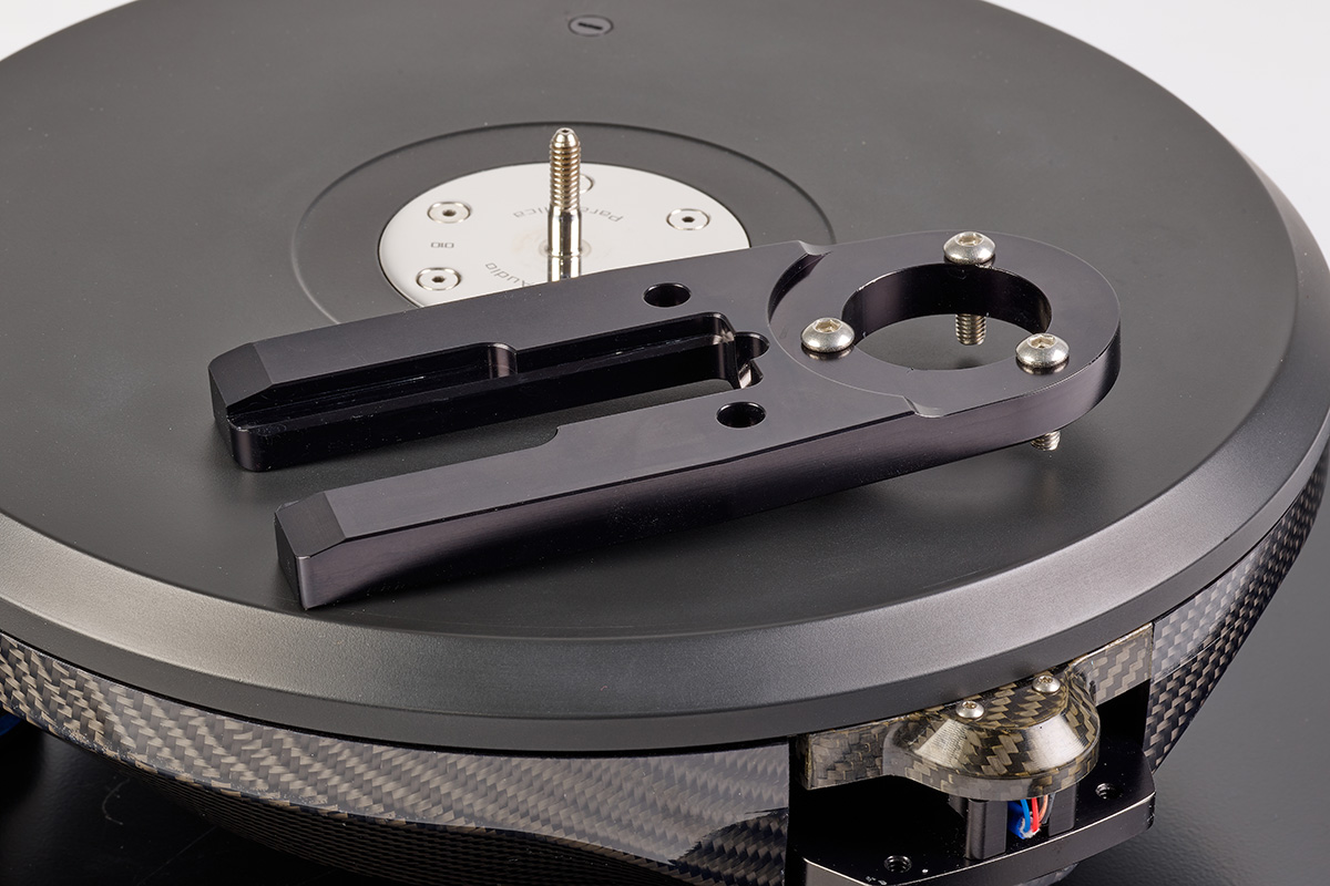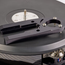 Auf einer aus POM gedrehten Basis steht nebenan ein Viv-Laboratory-Tonarm, der sich auch nicht um das schert, was „man“ so macht: Kröpfung ist für andere da, das System hängt ganz gerade unter dem Arm. Dies aber nur am Rande, da es eigentlich um den Dreher geht. Mehr Informationen zum Arm finden Sie in der Ausgabe 5/2017 unseres Magazins.