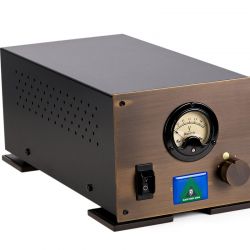 Alvin Lloyd treibt auch dieses Prinzip auf die Spitze, indem er mehrere fein gerasterte Bahnen mit Markierungen an der Tellerunterseite anbringt, die der Motorsteuerung 298 320 Informationen liefern – pro Umdrehung. Denn eine noch so gute Regelung könne ohne ausreichende Informationsdichte nicht schnell genug reagieren und letztlich nur dann regeln, wenn sich ein Fehler schon fast etabliert habe. Diesen gleichsam im Entstehen zu erkennen, sei sein erklärtes Ziel gewesen. Derart gut informiert, kann die Steuerelektronik den bürstenlosen Gleichstrommotor bestens an die Kandare nehmen und einen Gleichlauf erreichen, der beeindruckt: gerade einmal 0,02 % nach IEC60098B, was letztlich bedeutet, dass jede übliche Messplatte mehr Toleranzen aufweist und man sie misst, nicht aber den Plattenspieler.