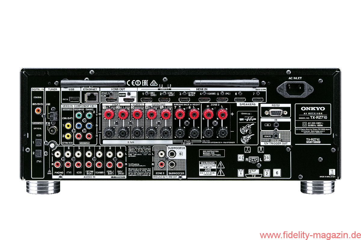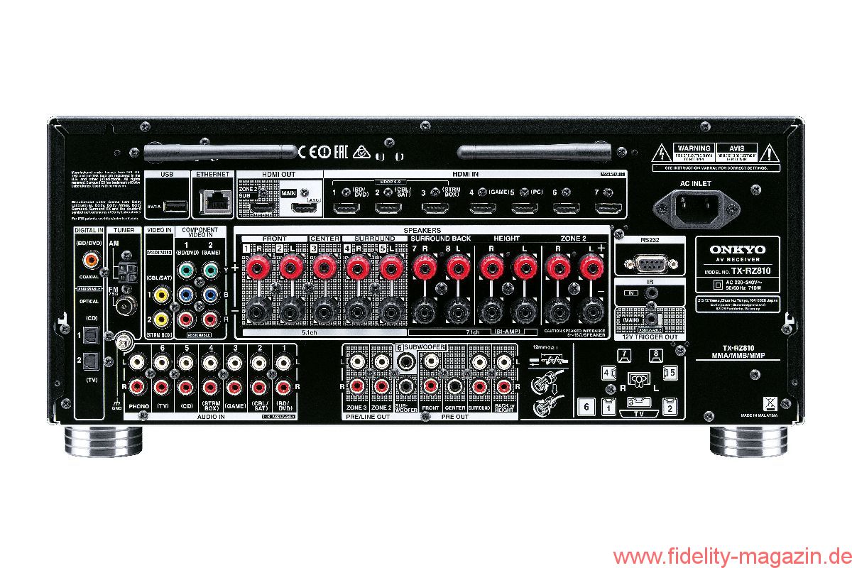 Der TX-RZ810 verfügt darüber hinaus über getrennte Schaltungsbereiche für die analoge Verstärkung und die digitale Signalverarbeitung sowie Kupfer-Sammelschienen zur Reduzierung von Interferenzen.