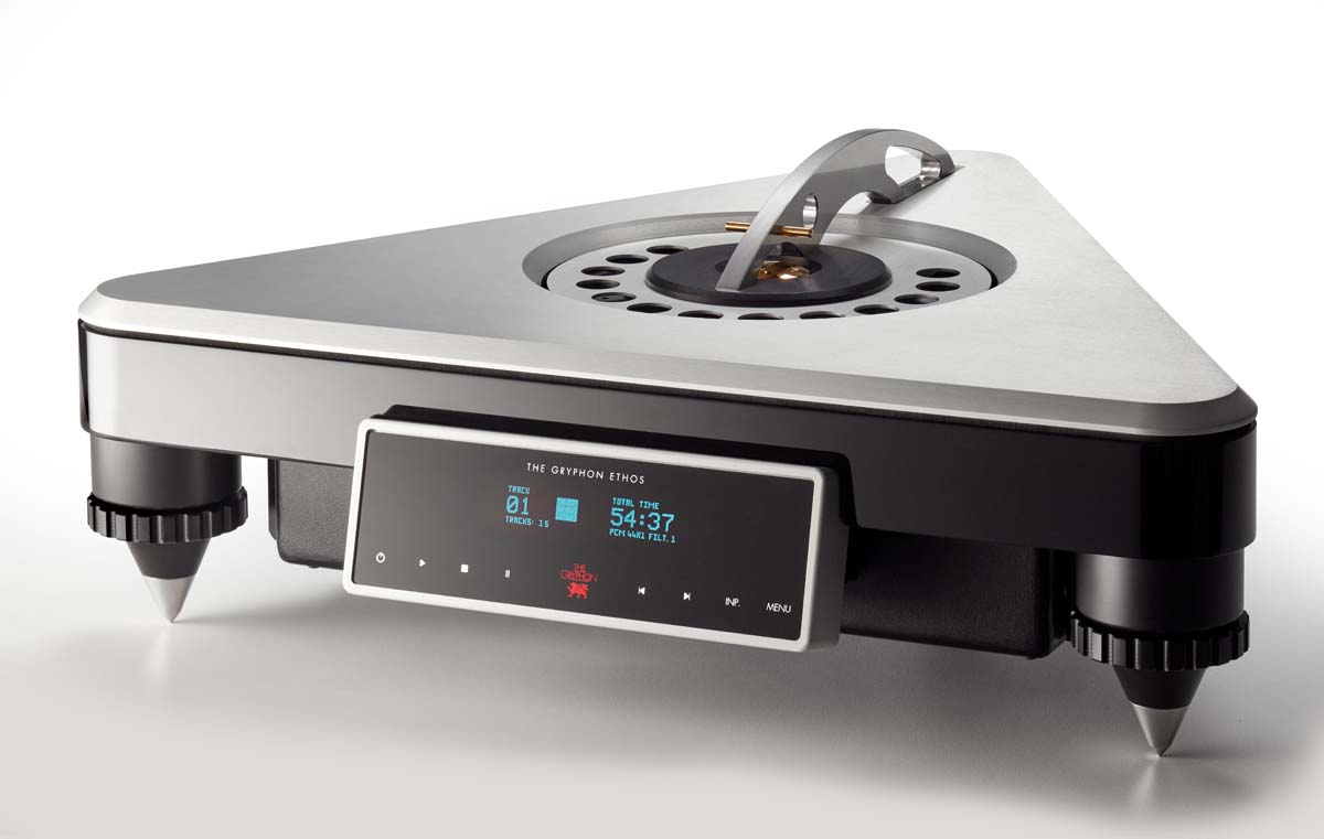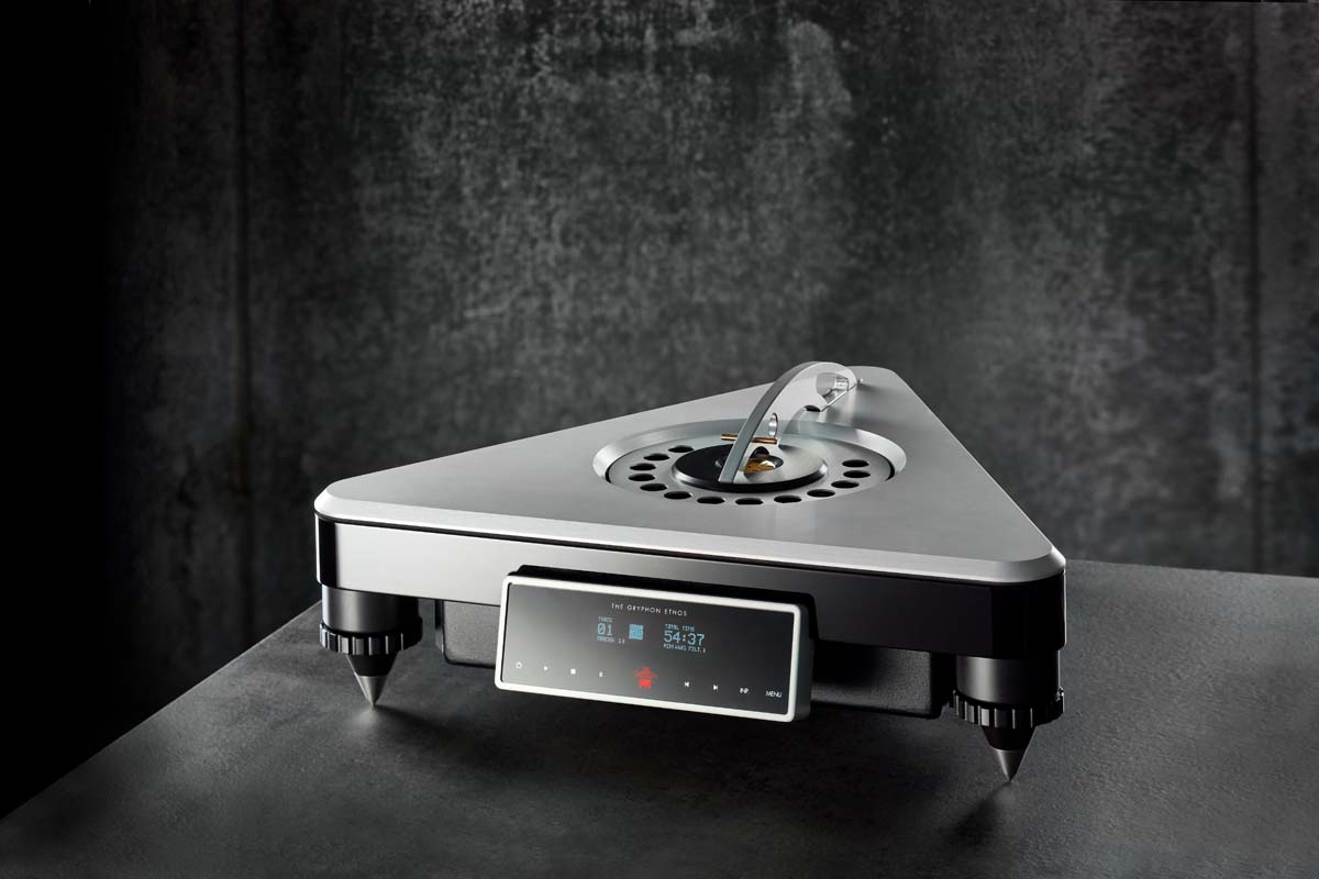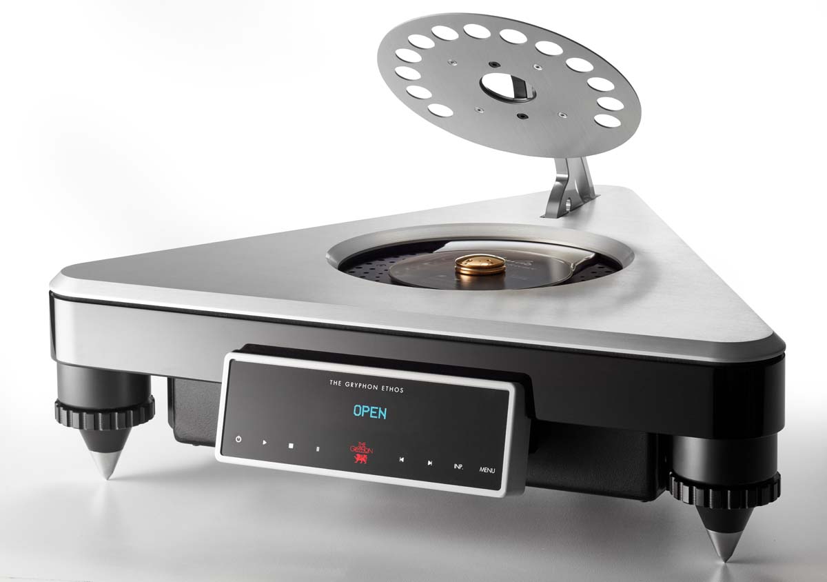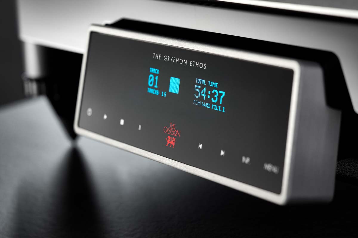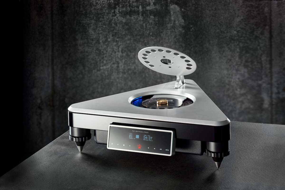 Dieser CD-Spieler ist baulich in vielerlei Hinsicht einzigartig. Angefangen von seiner dreieckigen Grundfläche (Design von Flemming E. Rasmussen) über den Lademechanismus bis hin zur edlen, berührungsempfindlichen Bedienfront. Genau genommen ist der Gryphon Ethos nicht nur ein CD-Spieler, sondern eine Kombination aus hochwertigem Laufwerk (CD-Pro8 S-Transport) und aufwendigem Digital-Analog-Wandler auf Basis des ESS-Sabre-Flaggschiffs ES9038Pro.
