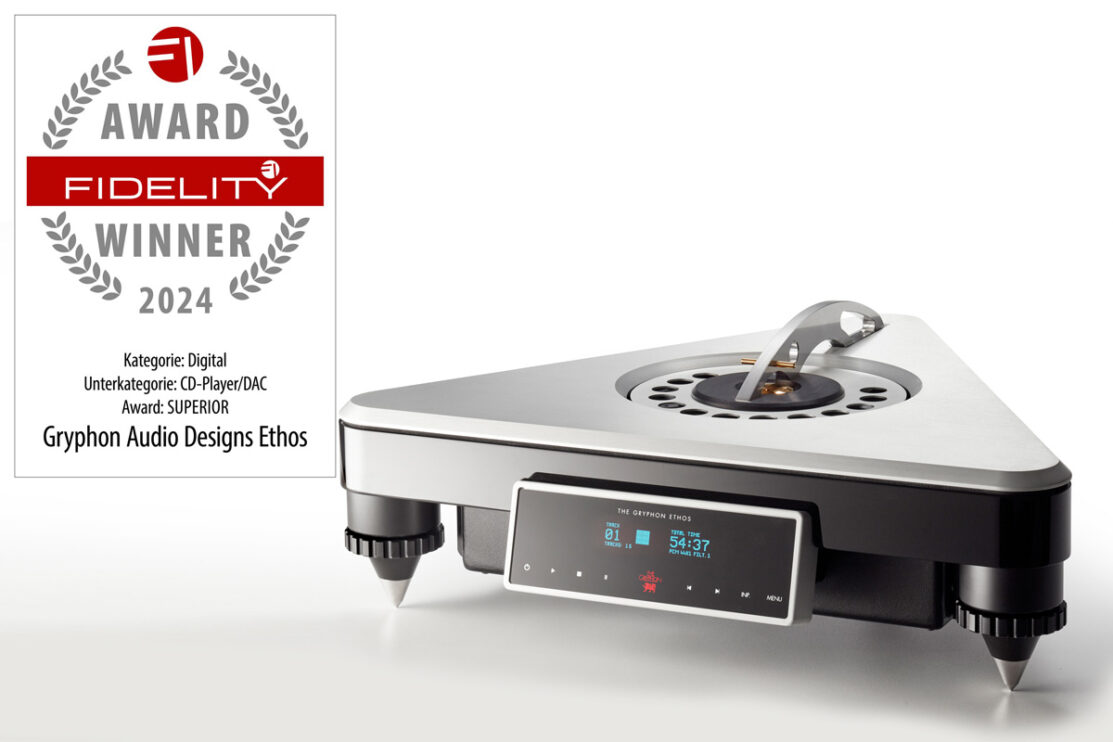 Reine Musikmaschine oder Kunstobjekt, das auch Musik wiedergeben kann – der CD-Player Gryphon Audio Designs Ethos vereint beides ohne Kompromisse. Von der unverwechselbar dreieckigen Grundform über den an eine Telefonwählscheibe erinnernden Deckel des CD-Fachs bis hin zu Details wie der kleinen Querstange, die als Fingereingriff dient – optisch ist der Ethos ein echtes Statement.