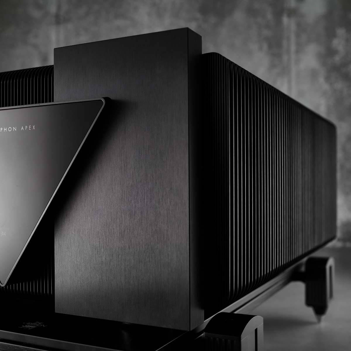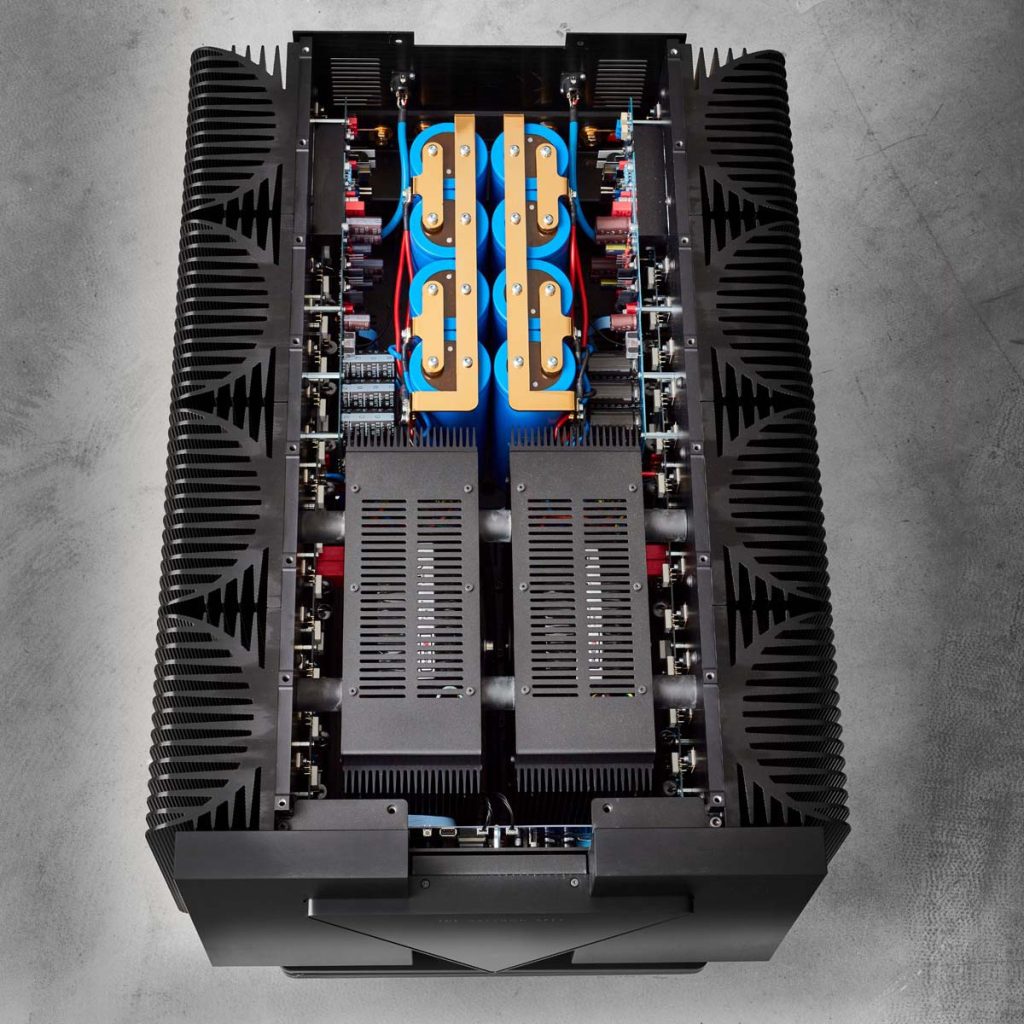 Die Materialspezifikationen des Apex verdeutlichen, dass bei seinem Design die Kosten keine Rolle spielten. Der Apex Mono verfügt über 128 bipolare Hochstrom-Ausgangstransistoren (64 pro Chassis), 2.080.000 μF (>2 Farad) Kondensatorbänke (>1 Farad pro Chassis), vier separate, speziell angefertigte 2.000 VA Ringkerntransformatoren (zwei pro Chassis), die alle in einem hervorragend verarbeiteten, schichtgedämpften Gehäuse untergebracht sind. Der Apex Stereo wiegt rund 200 Kilogramm, während ein Paar Apex Mono um die 400 kilo auf die Waage bringt.