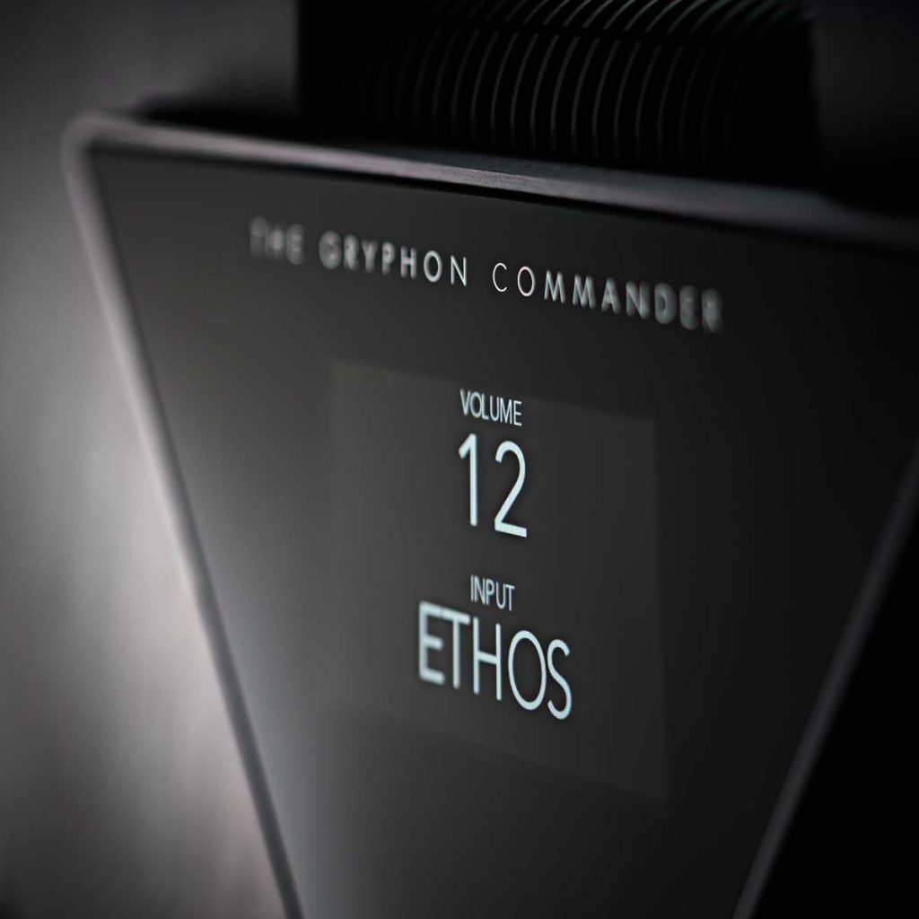 Ein extradickes, 4 mm dickes Glasfenster präsentiert das kapazitive 4,3-Zoll-TFT-Touch-Display des Commander, das für eine äußerst intuitive Benutzeroberfläche sorgt. Die individuelle Einrichtung des Systems wird durch die umfangreiche Commander-Menüsteuerung von Funktionen wie Einschaltpegel, Balance zwischen linkem und rechtem Kanal, maximaler Lautstärke, Anpassung des Quellenpegels, Eingangsbenennung, Display-Helligkeit (einschließlich Auto Dim On/Off), dediziertem AV-Durchgang für die Integration mit Heimkinosystemen, Ausgangspegel und Green Bias-Einstellung für den Einsatz mit Gryphon-Endstufen erleichtert. Ein einzigartiges Designmerkmal ist die Tatsache, dass sich das Display des Commanders mit dem Abstand des Hörers zum System verändert; auf diese Weise bleiben Lautstärke und andere Einstellungen unabhängig von der Hörposition einheitlich ablesbar.