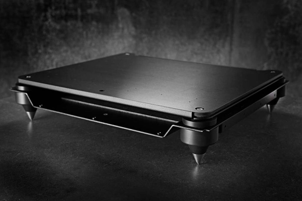 Die weitgehende Verwendung von Aluminium-Gehäusekomponenten sorgt für ein äußerst stabiles, resonanzarmes Gehäuse. Es minimiert sowohl mechanische als auch elektrische Beeinträchtigungen und schafft optimale Arbeitsbedingungen für die Schaltkreise des Commander. Einzigartig beim Commander ist die schichtgedämpfte Bodenplatte – ein “Sandwich” aus drei einzelnen Schichten Kerrock®, Bitumen und Edelstahl – das Resonanzen auf ein absolutes Minimum reduziert. Alle Verstärker- und analogen Stromversorgungsplatinen schweben oberhalb dieser Bodenplatte auf speziell entwickelten Isolatoren. Diese Konstruktion stellt eine unverfälschte, nahezu vibrationsfreie Umgebung für die empfindlichen Schaltkreise des Commander sicher.