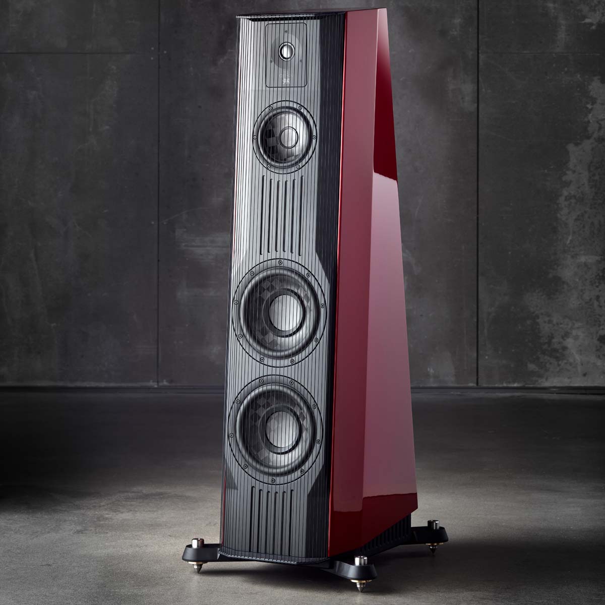 Technisch gibt sich die Eos 5 auf den ersten Blick verhältnismäßig konventionell: Dreiwege-Bassreflex, Kalottenhochtöner und Konusse im Mittel- und Tiefton – völlig in Ordnung; wenn im HiFi bekanntlich viele Wege nach Rom führen, wieso sollte man nicht einfach den geraden nehmen? In der technischen Umsetzung offenbart sich dann allerdings doch ein beachtliches Maß an technischer Finesse: Dem Hochtöner etwa hat Gryphon eine Membran aus Beryllium spendiert, während Mittel- und Tieftöner auf dasselbe schachbrettartig gewobene Kohlefasermaterial vertrauen, das auch manche andere Hersteller wie Perlisten, Børresen oder der Zulieferer SB Acoustics mit großem Erfolg einsetzen. Auffällig sind bei der Eos 5 jedoch die auf die parabolische Membran aufgebrachten Kunststoffringe, die die Ankopplung der Membran an die Schwingspule verbessern und so für ein besseres Impulsverhalten sorgen sollen.