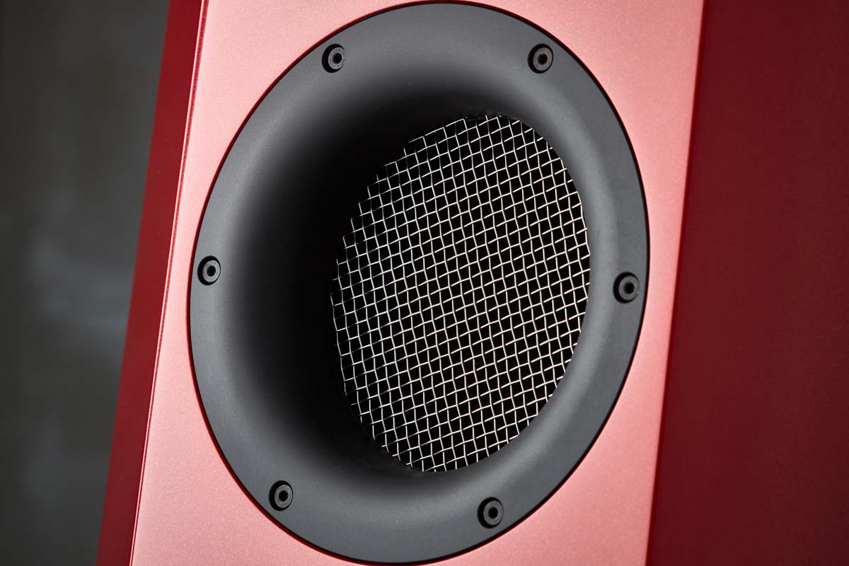 Besonderheiten: auf Phasenlinearität hin optimierte Frequenzweiche mit elliptischen Filtern, selbstheilende Mattlackierung (Wärmebehandlung erforderlich), Teflongleiter zur Erleichterung der Aufstellung
