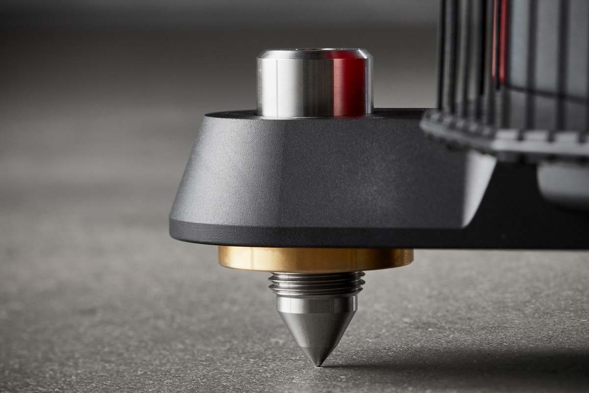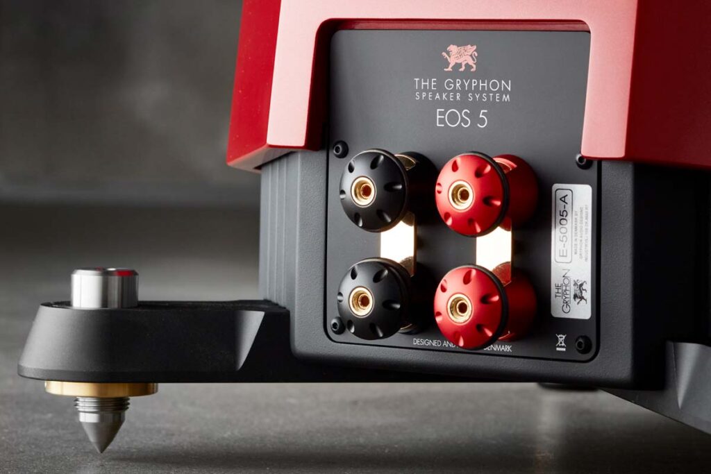 Manchmal lohnt es sich, zu warten: Bereits vor zwei Jahren war uns auf der HIGH END in München am Stand der Dänen die bildhübsche kleine Eos 2 aufgefallen – Gryphon-typisch mit einer überaus markanten Formgebung und in einem kühnen Hochglanzrot gehalten. So sehr wir uns auf das Standlautsprecherchen gefreut hatten, so realistisch mussten wir bleiben: Zwischenzeitlich haben wir bekanntlich innerhalb Münchens unseren Standort gewechselt, was mit sich brachte, dass unser Hörraum statt der bisherigen gut 40 Quadratmeter nun stattliche 55 Quadratmeter misst – einen Zweiwege-Lautsprecher mit 17er-Tiefmitteltöner in einen solchen Raum zu stellen wäre Mobbing und kein Test. Wir geduldeten uns daher noch ein wenig, bis die Lautsprecherschmiede die wesentlich größere Eos 5 auf die Spikes gestellt hatte, und forderten sogleich ein Paar an. Nachdem Björn Brormann vom deutschen Vertrieb die beiden bundesladengroßen Flightcases in unserem Hörraum abgeladen hatte, wich unsere leichte Panik vor dem Auspacken bald einem wohlwollenden Staunen –einige Hersteller denken beim Verpackungsdesign durchaus an die Handhabbarkeit, doch wenigen gelingt das so elegant wie Gryphon: Die Holzkisten lassen sich durch händisches Lösen einiger Klammern einfach demontieren und geben so den Lautsprecher frei, der sich anschließend über eine Schaumstofframpe in den Hörraum schieben lässt. Die zuvor erwähnten Spikes sind auch nur die halbe Wahrheit: In deren Abwesenheit steht die Eos 5 auf Teflongleitern, die es bemerkenswert einfach machen, die immerhin 64 Kilo schweren Brocken auf unserem Hörraumteppich umherzumanövrieren. Ein nicht zu unterschätzender Vorteil, kann man so doch wesentlich länger mit der genauen Positionierung herumexperimentieren, bevor Nervenkostüm und ATP-Vorrat die Suche unabhängig vom Höreindruck für erfolgreich beendet erklären. Ist die tatsächlich optimale Position erstmal gefunden, lassen sich die Eos 5 dann mittels der Spikes im Teppich festkrallen. Die Spikes sind dabei an sich schon einer kleinen Erwähnung wert: Sie besitzen ein herausnehmbares Dämpfungselement, der Nutzer kann also je nach Bodentyp und Klangphilosophie zwischen einer harten und (relativ gesehen) weichen Ankopplung wählen.