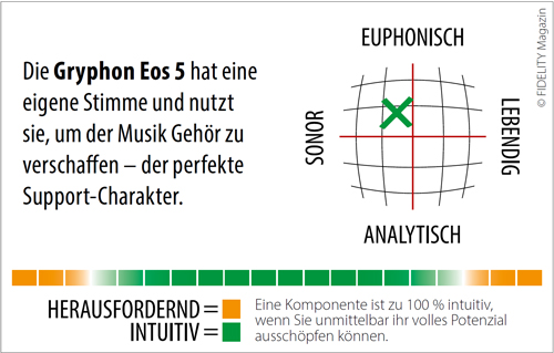 Die Gryphon Eos 5 hat eine eigene Stimme und nutzt sie, um der Musik Gehör zu verschaffen – der perfekte Support-Charakter.