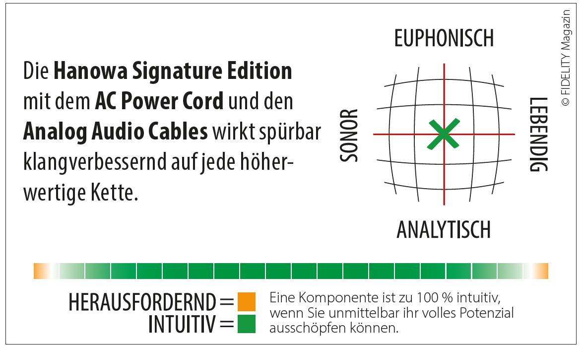 Die Hanowa Signature Edition mit dem AC Power Cord und den Analog Audio Cables wirkt spürbar klangverbessernd auf jede höherwertige Kette.
