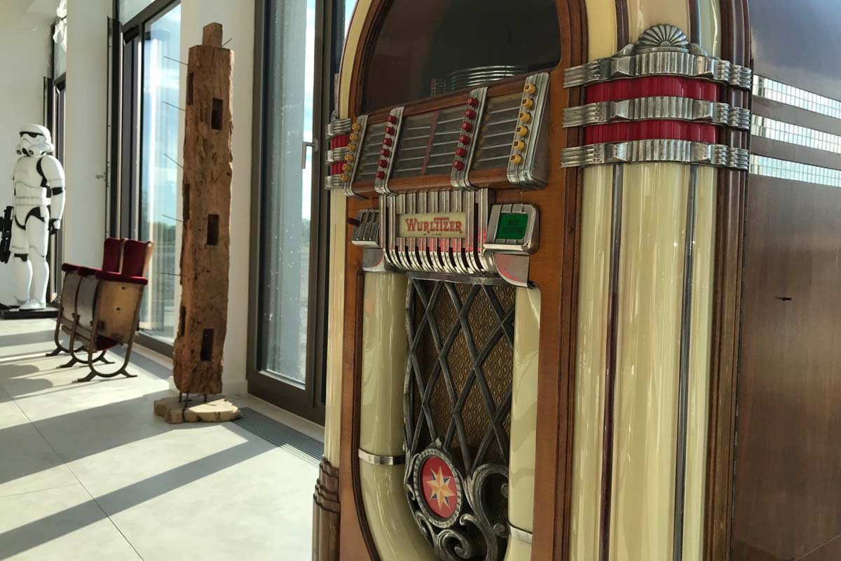 - Das mit gleichnamiger Software ausgestattete headphone.studio sowie Kopfhörer-Kino, stilecht bewacht von zwei lebensgroßen Storm-Troopern