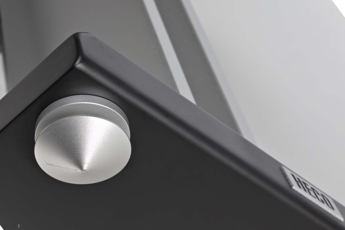 Mit einer Tiefe von knapp einem halben Meter findet sich ein passendes Bücherregal wohl höchstens in der Schulbibliothek von Hogwarts oder einer ähnlich altehrwürdigen Fakultät. Praktischerweise enthält Paket Nummer zwei die zur Box passenden Ständer, welche unvermeidbar im Preis von fünftausend Euro enthalten sind. Unpraktischerweise summiert sich das Gewicht einer spielfertig verschraubten Belladonna samt Ständern dann auf gut fünfunddreißig Kilogramm. Warum also „Regalbox“? Ein kurzer Anruf bei Heco endet in einem sehr aufschlussreichen einstündigen Gespräch (Danke an Martin Groß für die Geduld und Zeit) und bringt Licht ins Dunkel.