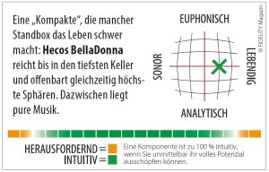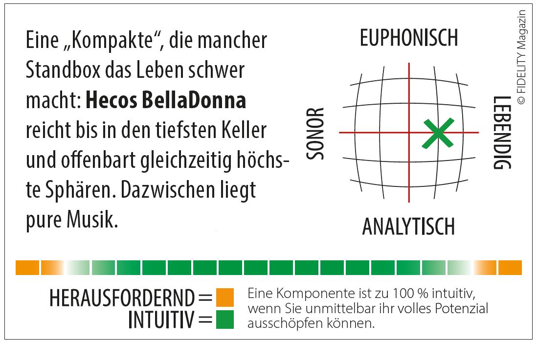Eine „Kompakte“, die mancher Standbox das Leben schwer macht: Hecos BellaDonna reicht bis in den tiefsten Keller und offenbart gleichzeitig höchste Sphären. Dazwischen liegt pure Musik.