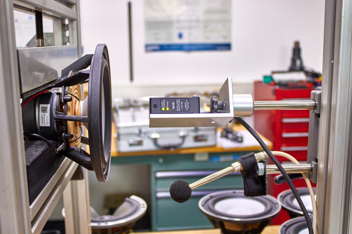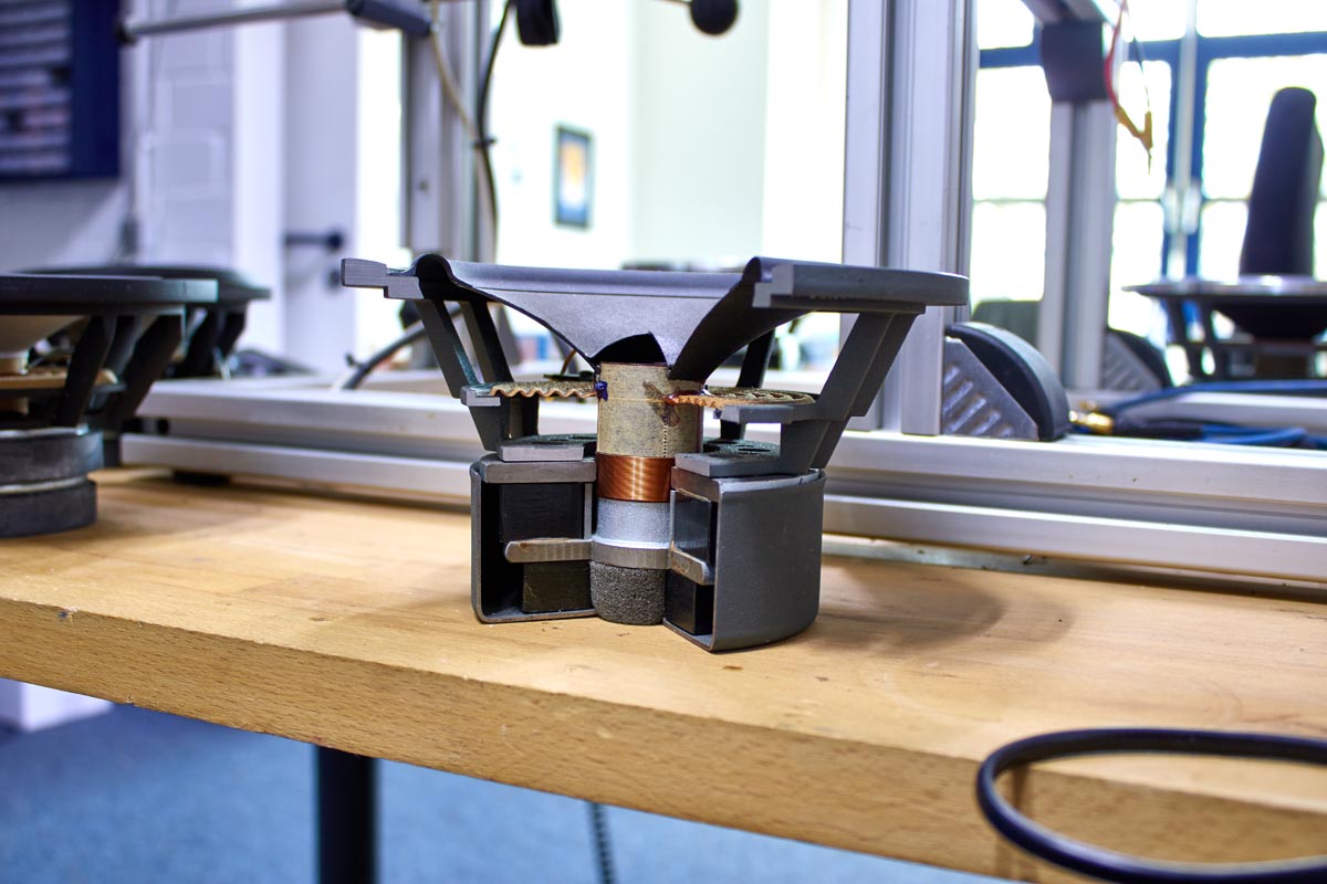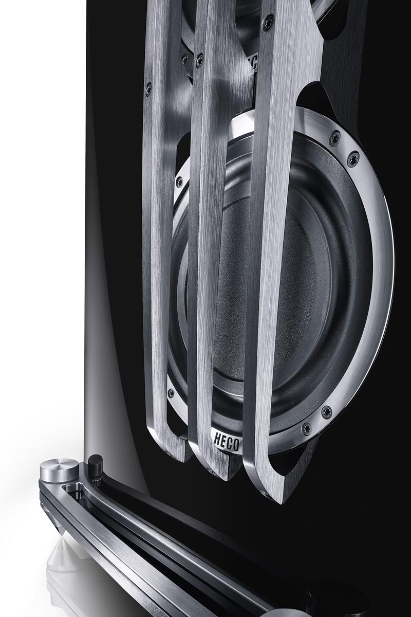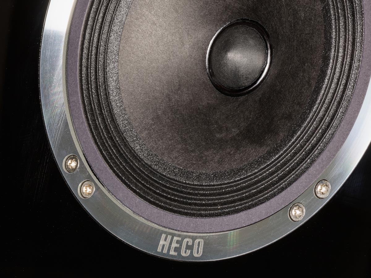 Um das altehrwürdige Material standesgemäß anzutreiben zu können, schneiderte der Hersteller seinen Chassis außerdem große und entsprechend leistungsfähige Alnico-Magneten auf den Leib. Ganz so „retro“ wie sich das jetzt anhören mag, sind die Konstruktionen natürlich nicht. Die Zutaten werden an einem hochmodernen Aluminium-Druckgusskorb zusammengefügt. Zudem züchtete Heco seine Mitteltöner (und auch alle anderen Chassis) während der Entwicklung mit dem hauseigenen Klippel-Lasermesssystem auf maximale Verzerrungsarmut. All dies trägt zu der unerhört detailverliebten Stimmenpräsenz von La Diva bei.