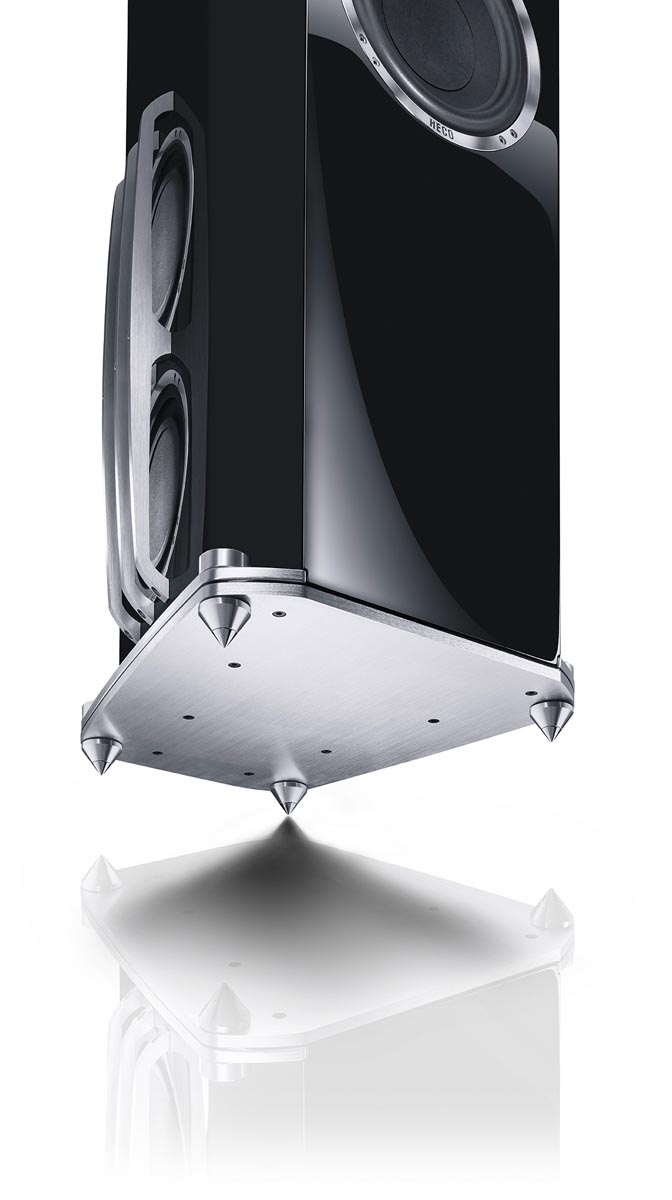 Als ich sie am darauffolgenden Montag unter Zuhilfenahme mehrerer Kollegen von ihrer Verpackung befreie, offenbart sich Hecos Großkaliber als erstaunlich wohlproportionierter und tadellos verarbeiteter Koloss. Ein durch und durch modern gestalteter Lautsprecher, der mit lupenreinem Klavierlack und polierten Metallintarsien entfernte Assoziationen an Art déco weckt. Selbst zu dritt war das Auspacken übrigens nicht so ganz ohne: Vorm Aufstellen muss man La Diva auf ihrem sanft nach vorn geneigten Haupt platzieren, was einen weichen Untergrund und etwas Fingerspitzengefühl erfordert. Nur so lassen sich die massiven Metallfußplatten und die beigepackten Gummifüße oder Metallspikes in die vorgesehenen Bohrungen schrauben. Schließlich war es dann aber doch so weit – wir konnten die fachgerecht vorbereiteten Boxen in den Hörraum transportieren und den Warmlaufvorgang starten.