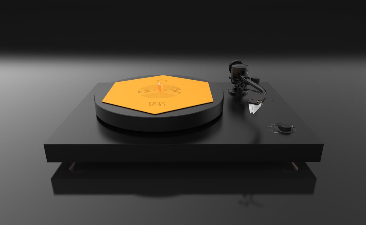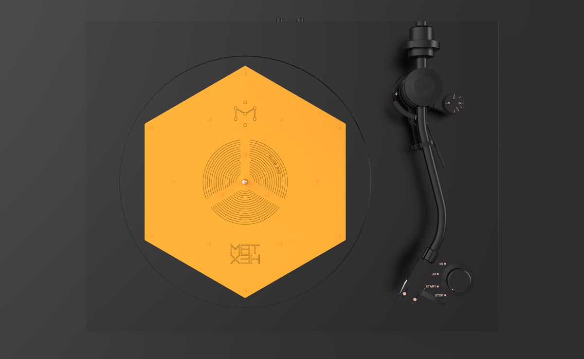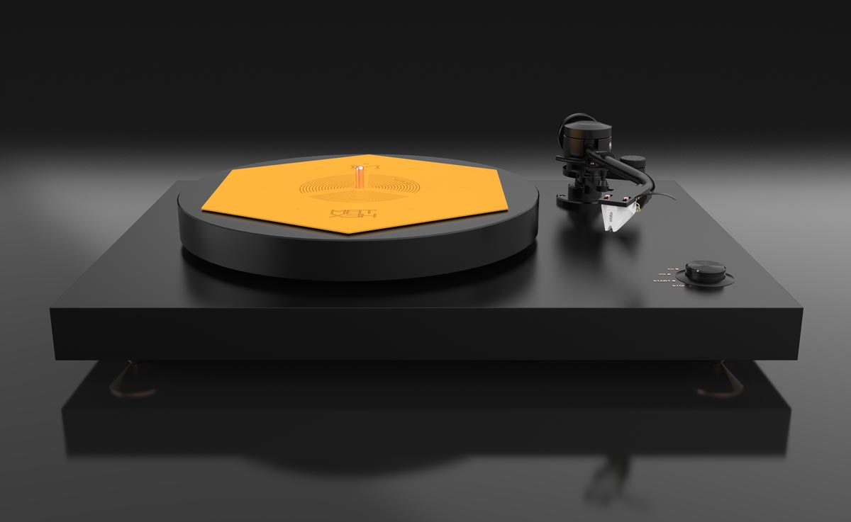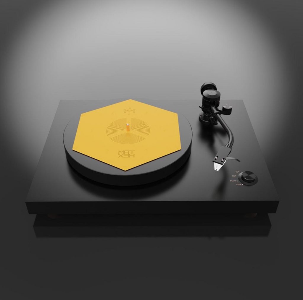 Das flache blassgelbe Hexagon hat der ungarische HiFi-Ingenieur Zsolt Fajt entwickelt. Seine Einsicht: Gerade bei der Schallplatte mit ihrer mikroskopisch feinen „Datenspeicherung“ ist eine effiziente Vibrationsvermeidung bzw. -ableitung essenziell für den guten Klang. Kein Widerspruch an dieser Stelle.