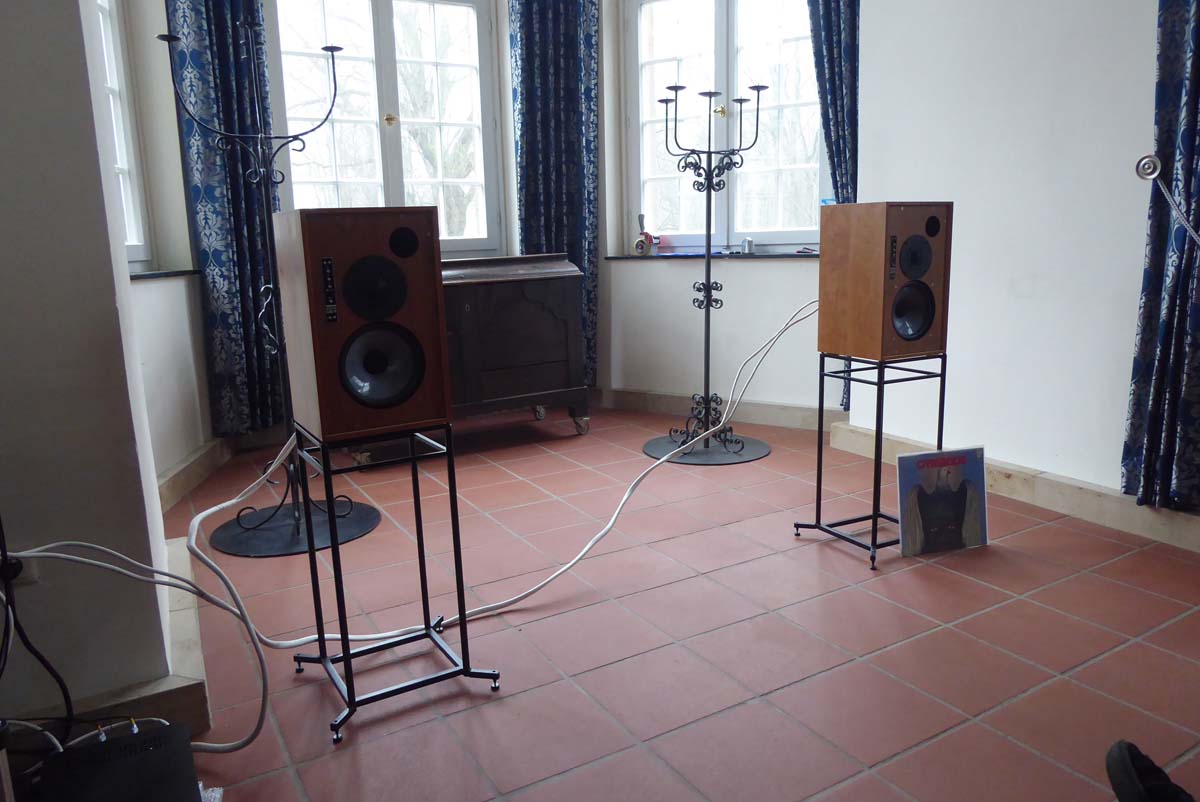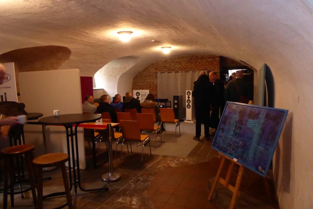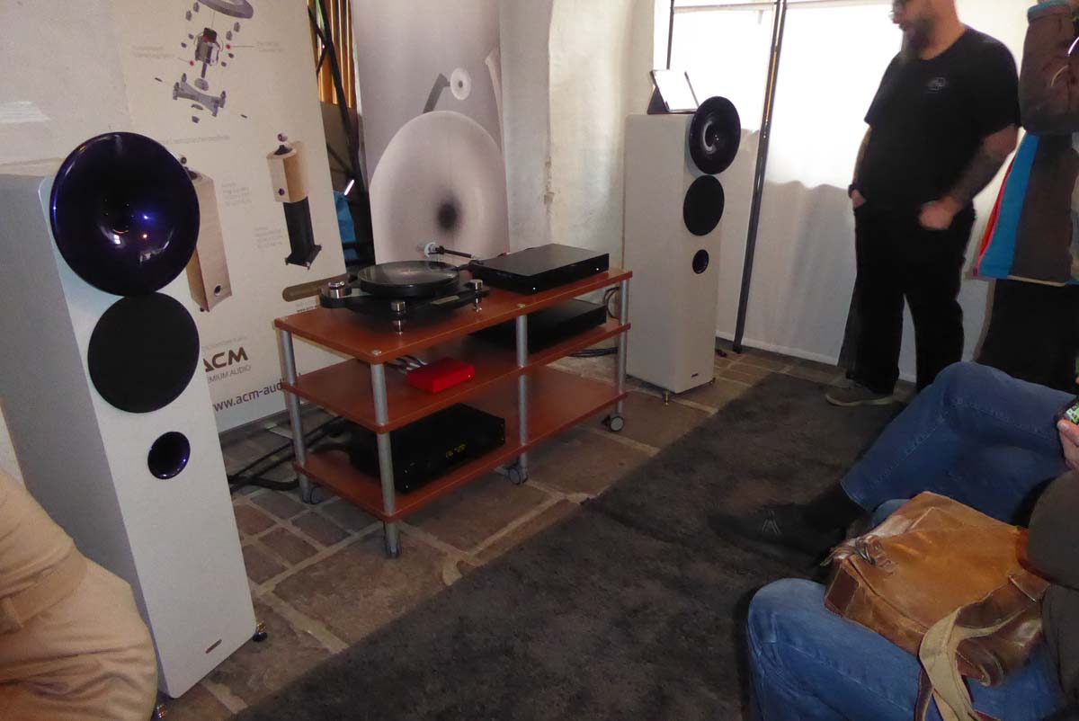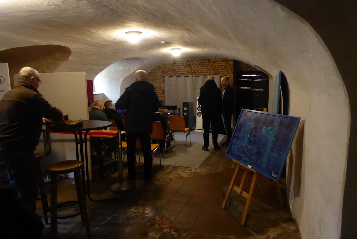 Das Nachbargewölbe teilten sich LEN-Hifi und ACM Premium Audio. An gemeinsamer Kette, bestehend aus Muarah-Plattenspieler und Perreaux-Elektronik, versorgt über einen LAB 12 Gordian Netzfilter, führten sie im Wechsel Standlautsprecher von Horns aus Polen und die innovativen Kompakten Ilumnia Vocalis MK II NE aus Belgien vor.