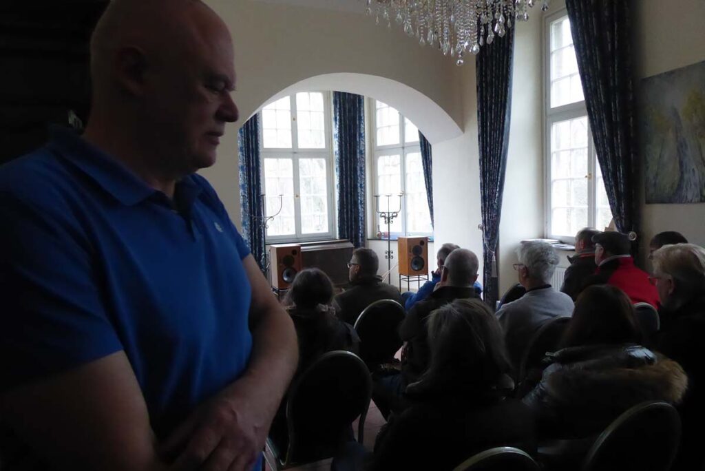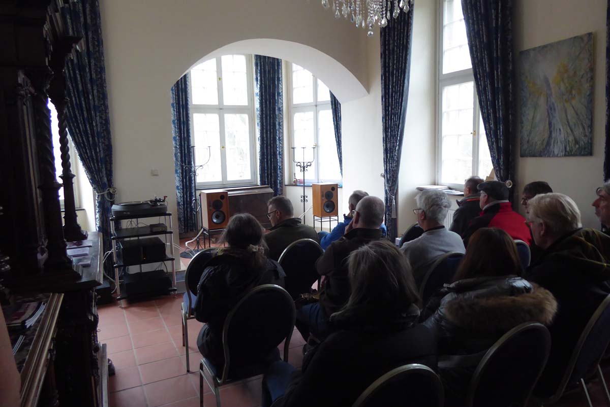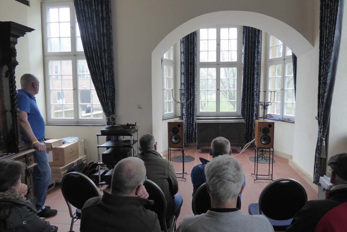Am 18.+19. Januar wurde der Veranstaltungsreigen wie seit nunmehr zehn Jahren von “Hifi auf Burg Vondern – Hifi im Ruhrgebiet“ eingeleitet. Ungeachtet des feuchtkalten Winterwetters warteten meist dunkel gekleidetete Hifi-Jünger geduldig vor der Burg auf Einlass. Die Stimmung erinnerte mich an das Anfangsszenario aus Der Name der Rose. Pünktlich um 11 Uhr öffnete sich das Portal des Herrenhauses. Im Eingangsbereich begrüßte Burgherr Frank Rudolph seine Gäste; dieses Jahr verzichtete er auf den Wegezoll.