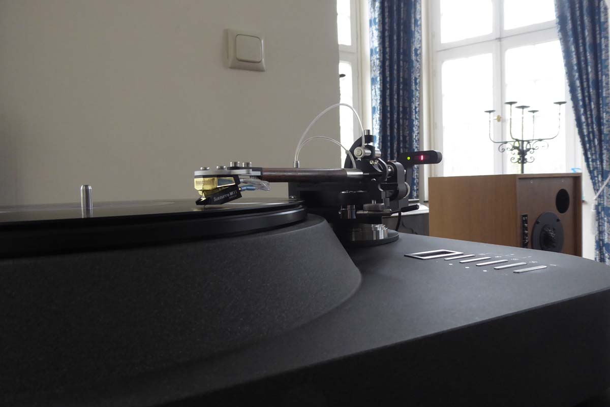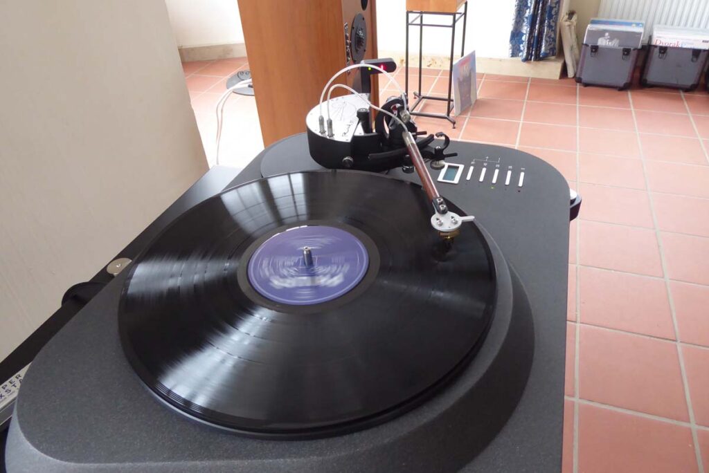 Uwe Heile von Audio Offensive und Andrejs Staltmanis boten eine überzeugende Vorstellung mit Reed-Laufwerk, dem extrem aufwendig konstruiertem Reed 5T Tonarm, Soundsmith Sussurro MKII Gold Moving Iron Tonabnehmer, Vitus-Verstärker und Graham LS5/9 BBC-Monitoren.