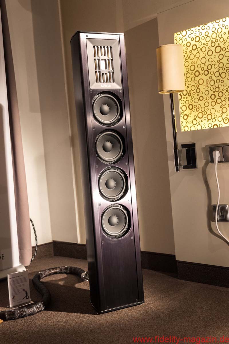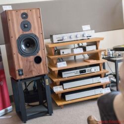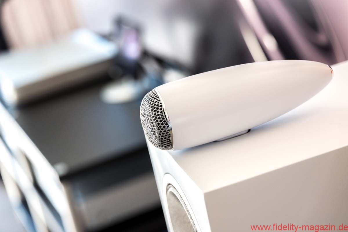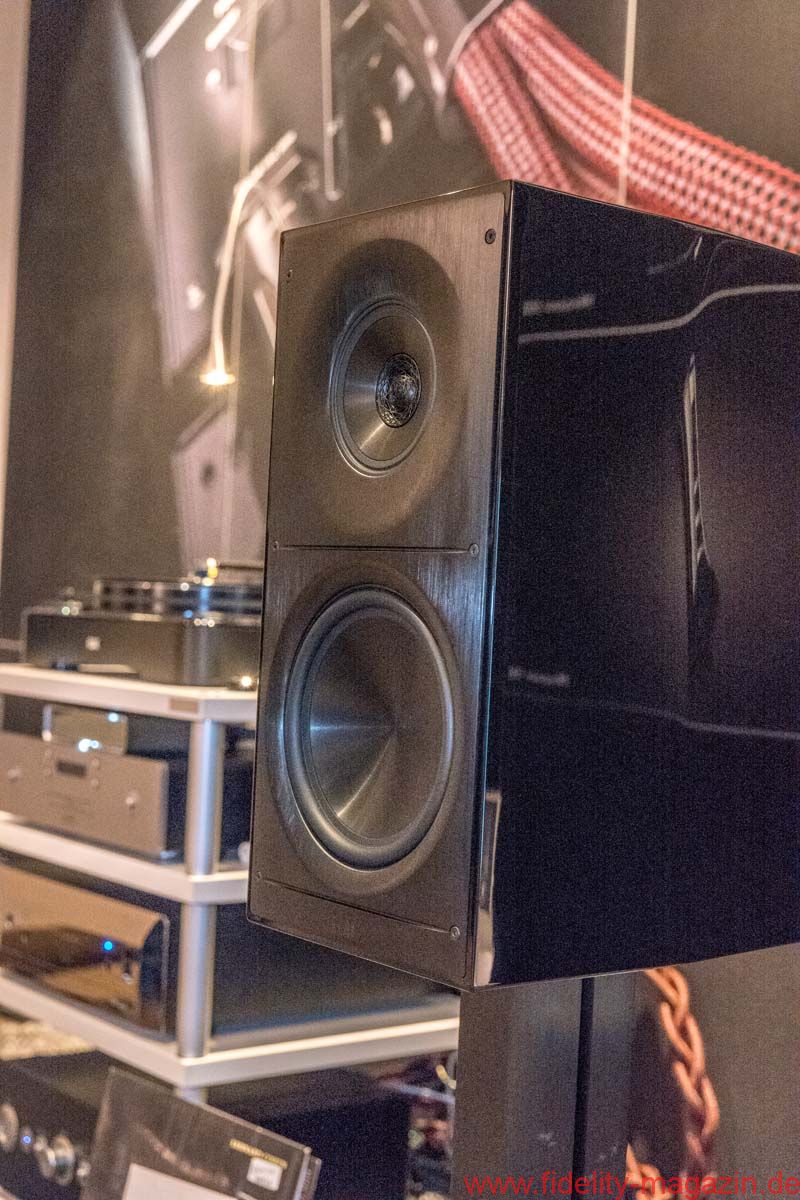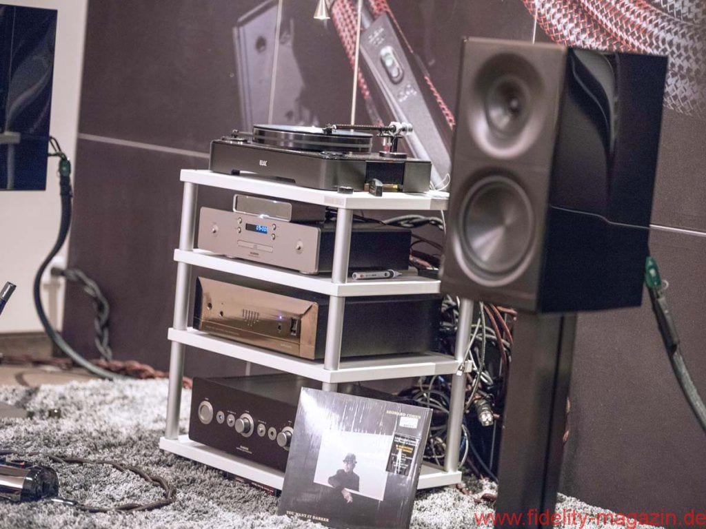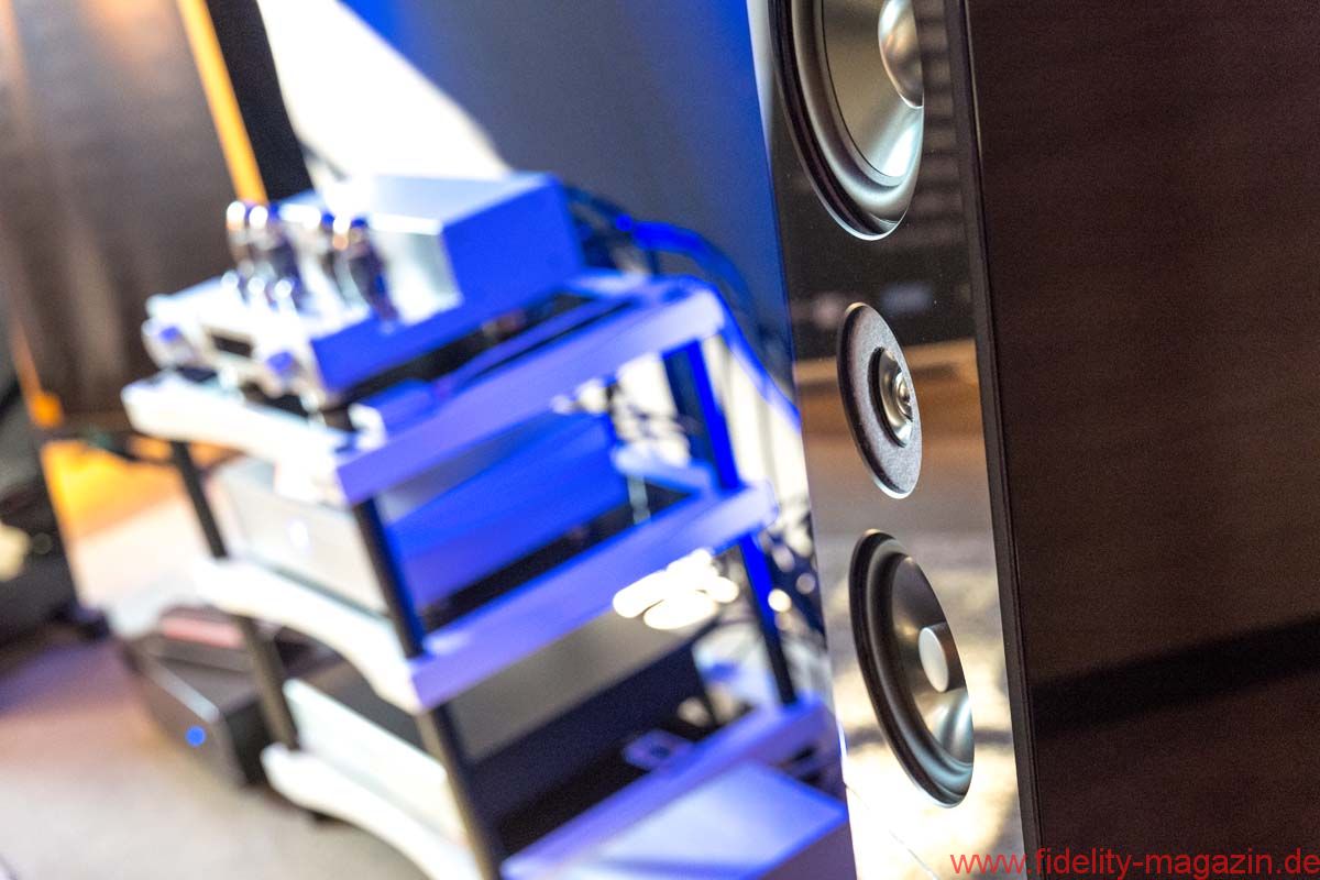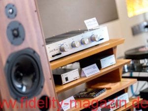 Angesteuert von hauseigenen R2500-Komponenten zogen die kompakten T+A-Schallwandler so richtig durch und überzeugten auch skeptische Besucher mit verblüffender Dynamik und extrem stabiler Performance. Große Klasse, selbst wenn man rund 25000 Euro für die komplette T+A-Kette dagegenstellt. Später spielten hier auch noch die größeren S300, was aber am Gesamtpreis kaum etwas änderte, weil die massiven Stative für die R300 ungefähr so viel kosten wie der Preisunterschied zwischen R- und S-Box.