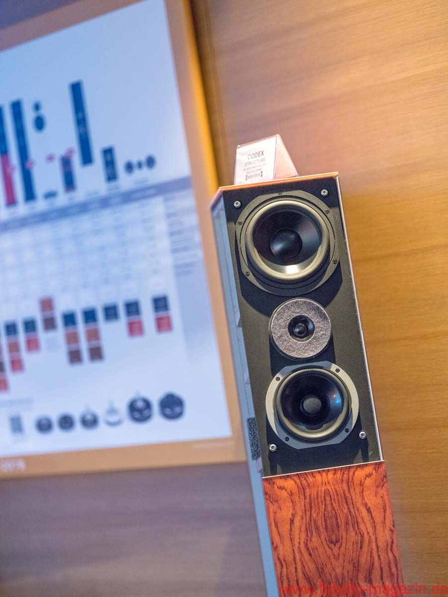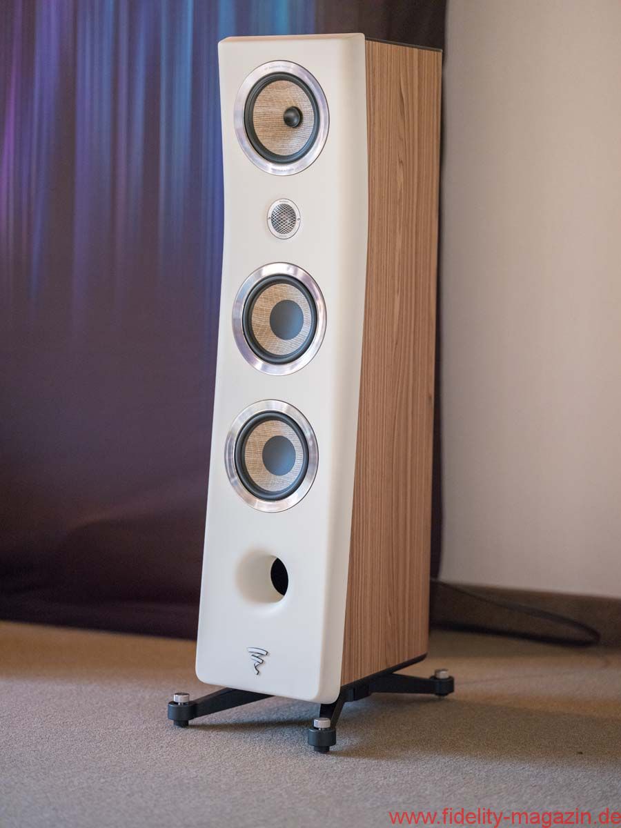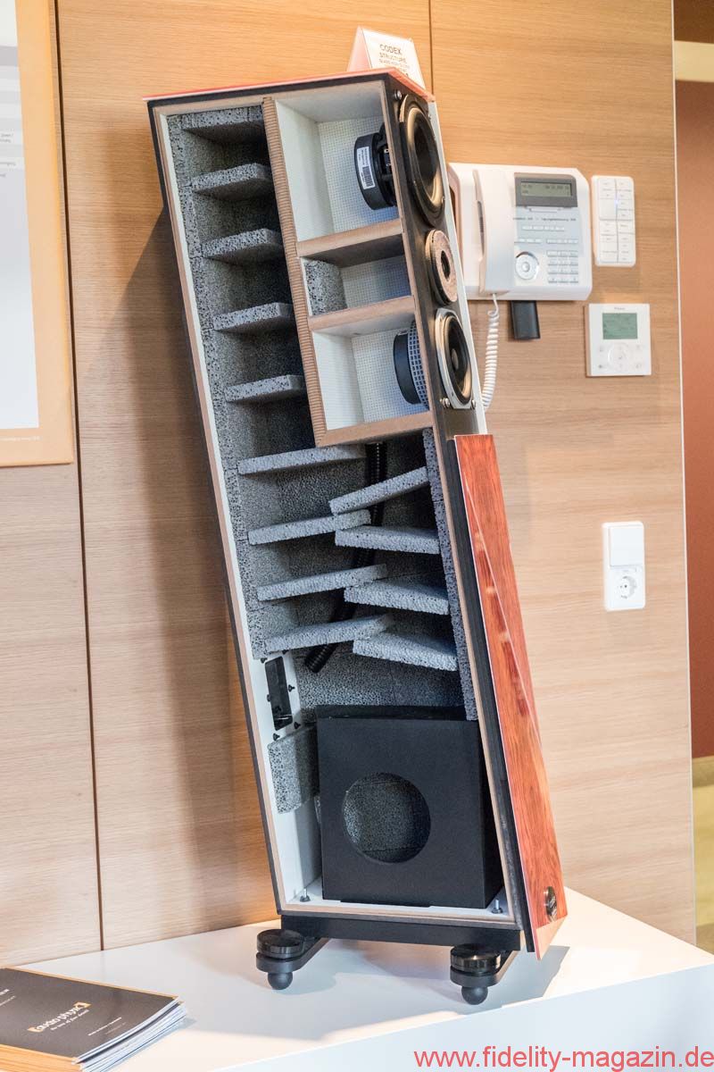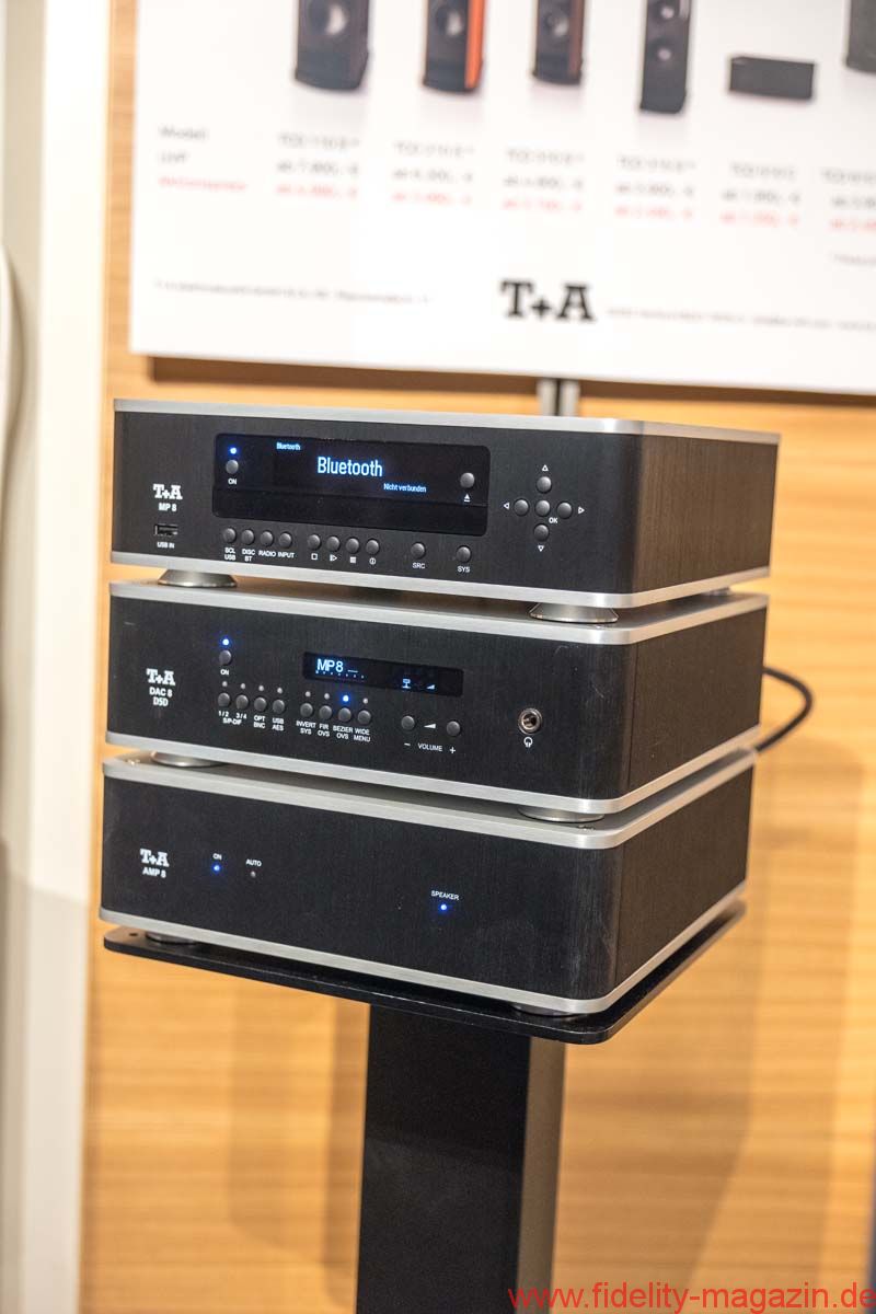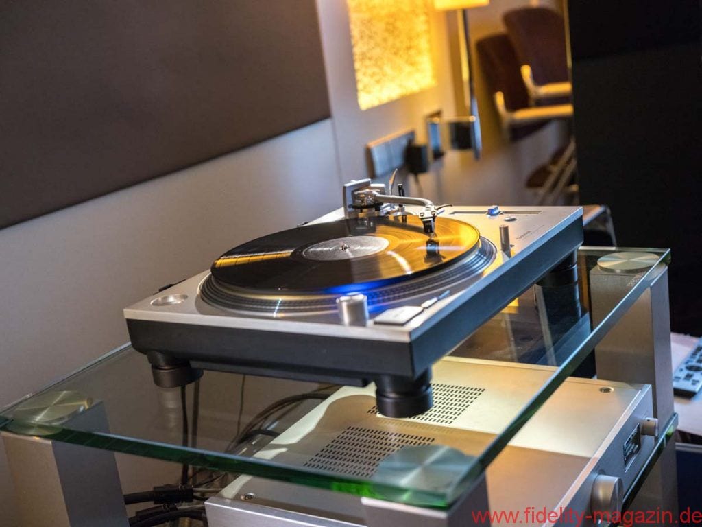 Angesteuert von hauseigenen R2500-Komponenten zogen die kompakten T+A-Schallwandler so richtig durch und überzeugten auch skeptische Besucher mit verblüffender Dynamik und extrem stabiler Performance. Große Klasse, selbst wenn man rund 25000 Euro für die komplette T+A-Kette dagegenstellt. Später spielten hier auch noch die größeren S300, was aber am Gesamtpreis kaum etwas änderte, weil die massiven Stative für die R300 ungefähr so viel kosten wie der Preisunterschied zwischen R- und S-Box.