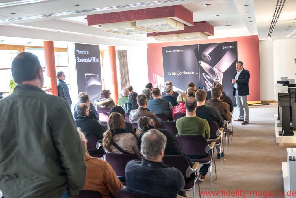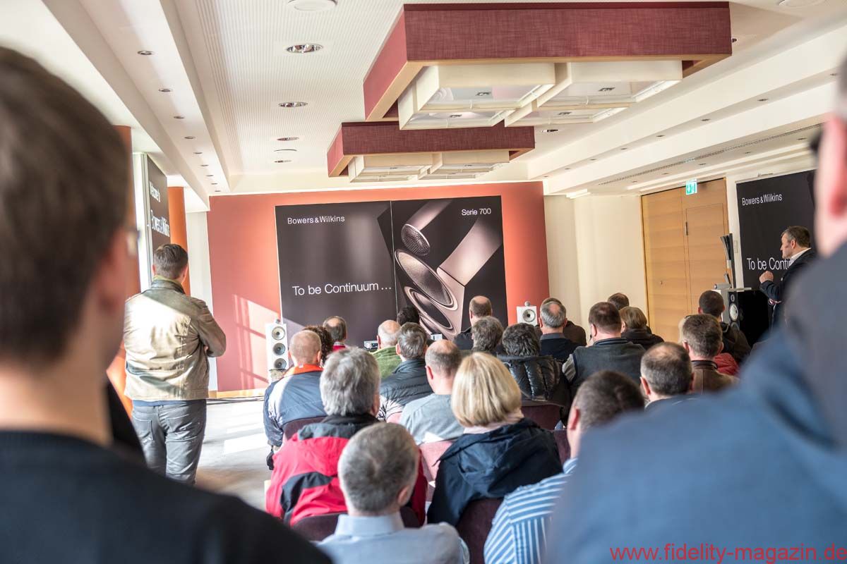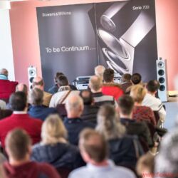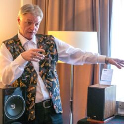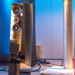 Wie übrigens auch Bowers & Wilkins, die mit der vorzüglichen 702 S2 in einem „zusammengekoppelten“ Raum brillieren konnten und nicht zuletzt dank der unterhaltsamen Musikauswahl von „MC Ulf“ einen hervorragenden Eindruck hinterließ. Best Sound of Show, da war sich das FIDELITY-Team ausnahmsweise einig, bot allerdings ein Pärchen MartinLogan Expression ESL 13A an Electronic von Aurender und Moon – ebenfalls in einem Konferenzraum, mit mindestens einem Dutzend Sweetspot-Plätzen, ganz erstaunlich. Zugegeben zu einem mehrfach höheren Systempreis, das will ich natürlich nicht verschweigen. Immer wieder witzig und erhellend war der Probelauf des aktiven Subwoofers, der laut Jens Müller (Audio Components) zu Hause sofort die Frage aller Fragen beantworten lässt: „Welche Vitrine muss noch raus?“