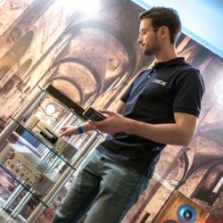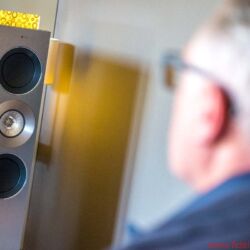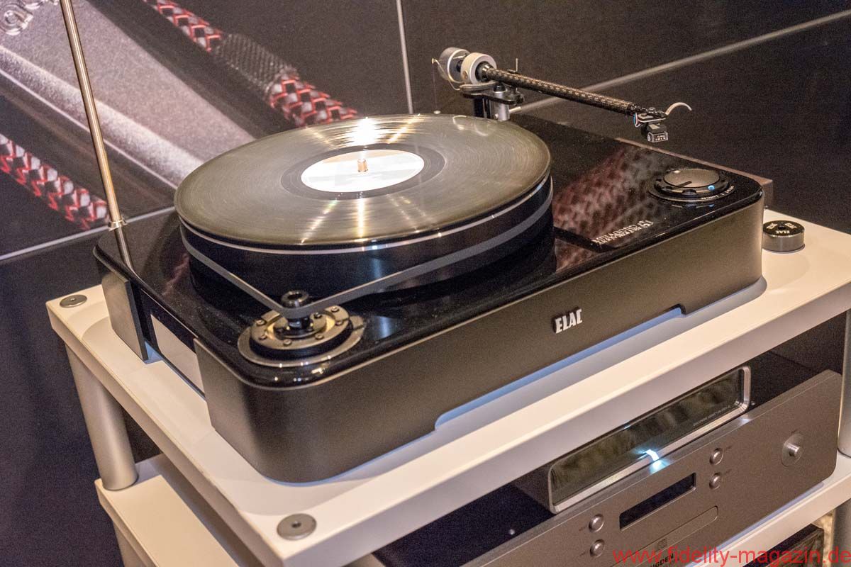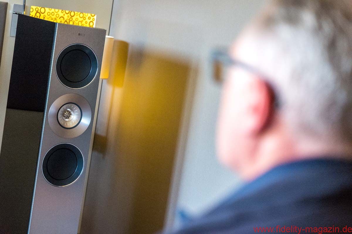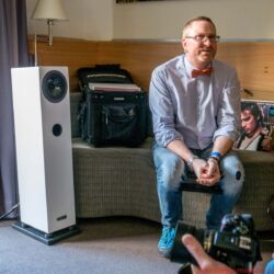 Um nebenan in den ELAC-Raum hinein zu gelangen, brauchte ich mehrere Anläufe. Das wurde nur noch von Dynaudio übertroffen, deren Vorführraum von zwei freundlichen „Türstehern“ bewacht wurden, um die jeweils laufende Vorführung der brandneuen Modelle Xeo 20 und Xeo 30 nicht zu stören, die in Freiburg Europa-Premiere feierte. Verständlich. Der ausgesprochen schöne Ausblick aus dem lichtdurchfluteten Dynaudio-Raum war später dann praktisch das Sahnehäubchen der Vorführung. Warum sich auch bei ELAC die Besucher schon früh stauten? Weil die dort gezeigten neuen Koaxial-Lautsprecher so herrlich sauber mit dem Miracord 70 Black Edition (eine Reverenz an den 70. Geburtstag des Ur-Plattenspielers aus Kiel) zusammenspielten. Spontan demonstrierte Thijs Helwegen von AudioQuest bei ELAC, welche klanglichen Fortschritte die brandneuen Netzkabel der US-Amerikaner sogar beim digitalen Ripping bringen – und warum der simple Austausch eines Stückchen Digitalkabels in einem High-End-Musikserver eine echte Klangsteigerung bedeuten kann. Sehr eindrucksvoll, sowohl was die ELAC-Lautsprecher, als auch die AQ-Kabelage betrifft.