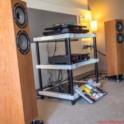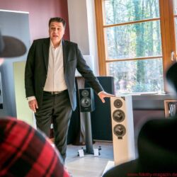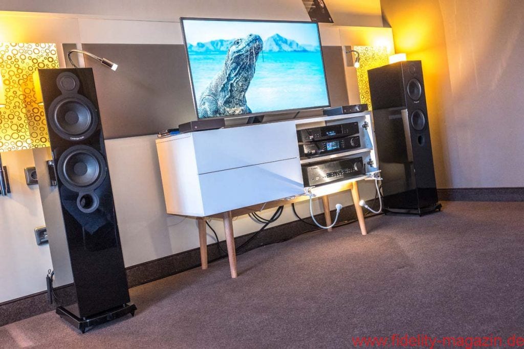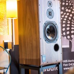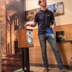 Was übrigens auch für TAD galt: Plattenspieler und Elektronik von Rega an Tannoy-Standlautsprechern spielten für zusammen nicht einmal 3000 Euro einfach großartig! Zwischendurch gab’s immer wieder kurze, aber massive Basseruptionen von nebenan zu hören, denen ich natürlich auch auf den Grund gehen musste. Tatsächlich sorgten kompakte Canton 9K für das Bassgewitter, ordentlich auf Trab gebracht von Marantz-Elektronik. Allerdings muss man auch erwähnen, dass die handfest-highendig operierenden Canton 9K die kleinsten Modelle aus der großen Reference-Serie sind, allein schon soviel kosten wie die komplette Tannoy-Rega-Kombi von nebenan und daher auch einfach „abliefern“ mussten. Noch deutlich kostspieliger – bei ähnlichen Abmessungen wir die Canton – stellten sich die Talis R300 von T+A ins Rampenlicht.