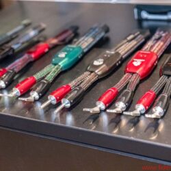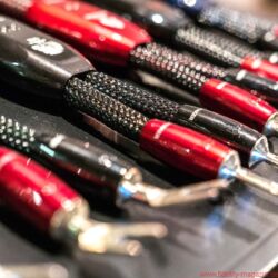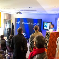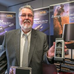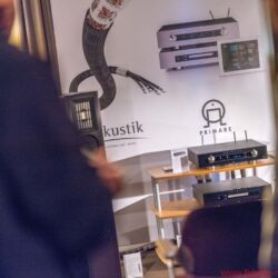 Gleich mehrere Aussteller bemühten sich, den Besuchern Unterschiede bei Kabeln näherzubringen. Bei Connect Audio standen verschiedene Analog- und Digital-Verbinder von Nordost sowie eine zentrale Erdung mit Qkore im Fokus der wortreichen Erklärungen, was über Komponenten von Hegel, Densen und die süßen kleinen Guru-Lautsprecher sehr anständig gelang.