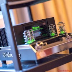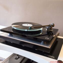 „Gute Energie“ versprühte, wie so oft, das bei Input Audio installierte System, das Komponenten von Creek, Transformer, Dynavector und natürlich Harbeth umfasste. Ich musste nur zwischendurch mal schnell raus, als Input-Chef Bernd Hömke unvermittelt einen kleinen Free-Jazz-Anfall auslebte … Ich fand bei Fezz Audio günstige Röhrenverstärker aus Polen, die von Audium vertrieben werden – und weitere „gute Energie“ bei Clearaudio und Ascendo, wo der zuvor schon bei Canton erlebte Basstrack („FML“ von Deadmau5) noch eine ganz Ecke satter und unerschütterlicher den Raum durchwalkte. Einen noch verblüffenderen Tiefgang lieferten die brandneuen, vollaktiven Ascendo D6 – die in Freiburg auf der HiFi Convention 2018 übrigens ihre Weltpremiere feierten – mit Trentemøller, zarte Töne kamen dann von Annen May Kantereit, deren Live-LP zugleich auch den Clearaudio Concept Active in bestem Licht erscheinen ließ. Dieser ebenfalls brandneue „All-in-one-Plattenspieler“ (inklusive Phonoentzerrer, Vorverstärker und Kopfhörerausang) erlebte hier seine Deutschlandpremiere und lieferte absolut überzeugende Erlebnisse – made in Germany, presented in Freiburg, adored by FIDELITY.