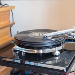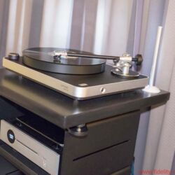 Frisch gestärkt traute ich mich, bei In-Akustik eine neue, äußerst gelungene Wandhalterung für anspruchsvolle Plattenspieler näher zu begutachten. Unter dem Markennamen Stoic HighStandArt (das „t“ ist hier wichtig und auch richtig) baut Ralph Riedl eine hervorragend verarbeitete und voll justierbare Konstruktion, bestehend aus einem teils sandgefüllten Edelstahlrahmen mit einer Stellfläche aus Multiplexholz oder Schiefer. Fantastische Qualität, made in Germany, zum angemessenen Preis.