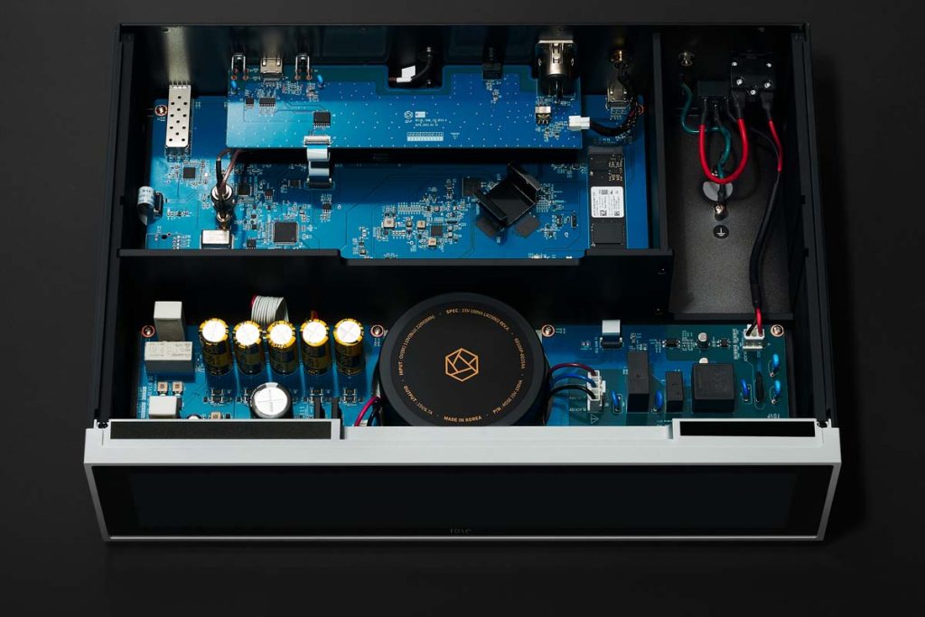 Zudem wird durch einen Superkondensator mit hoher Kapazität und eine lineare Endstufenkonfiguration, die Leistungsgeräusche blockiert, eine stabile Stromversorgungsumgebung geschaffen. Eine NVMe-SSD, die speziell der Zwischenspeicherung von Musikdateien dient, reduziert die Auswirkungen von Vibrationen und Störungen, wie sie beispielsweise bei der Wiedergabe von Musikdateien von einer an den USB-Anschluss angeschlossenen Festplatte auftreten. Dies verhindert eine Verschlechterung der Audioqualität und sorgt für einen gleichmäßigen und kohärenten Klang, der der Vervollkommnung des Klangerlebnisses dient.