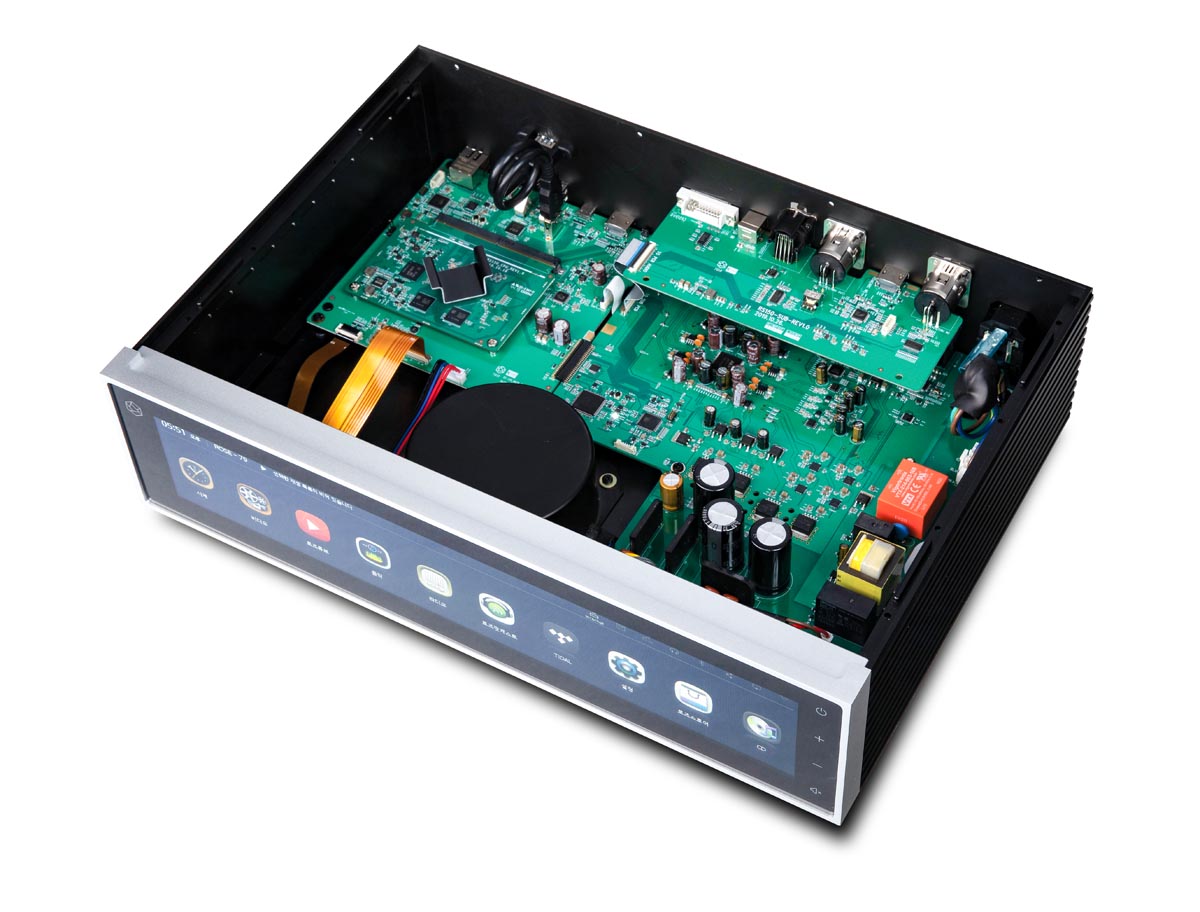 Die klangwichtigen elektronischen Baugruppen sind im RS150 sorgsam separiert, um gegenseitige Beeinflussung und damit Klangbeeinträchtigungen durch vagabundierende (Hoch-)Frequenzen zuverlässig auszuschließen.