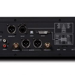 Ein großer Ringkerntrafo sorgt dafür, dass der RS150 bei keiner Anwendung „in die Knie“ geht. Immerhin verarbeitet der schlanke Streamer nicht nur hochaufgelöste Audiosignale, sondern auch Videodateien bis zum 4-K-Format. Die Rückseite des RS150 zeichnet sich durch eine große Zahl unterschiedlicher Anschlussformate aus. Der High-End-Fan vermerkt eine Reihe symmetrischer Anschlüsse für die Analogeingänge und für den digitalen AES/EBU-Ein- und Ausgang, ergänzt um USB- und HDMI-Buchsen sowie einen Slot für Micro-SD-Karten – maximale Störungsfreiheit, gefolgt von freizügigem Anschluss-Management, steht im Vordergrund. Das Touch-Display auf der Front des RS150 kann Videobilder wiedergeben und ermöglicht die Vorschau von Videos und die Bedienung ohne angeschlossenen Bildschirm. Der HD-Streamer lässt sich drahtlos ins Heimnetz einbinden.
