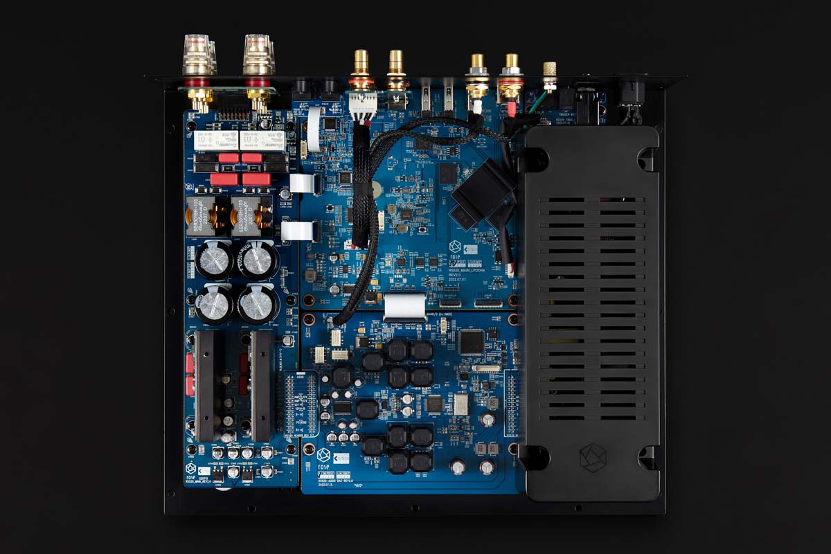 In der Eingangsstufe kommen Feldeffekttransistoren zum Einsatz, und die Class-AB-Verstärkungsmethode sorgt für eine gleichmäßige Audioqualität und minimiert die Wärmeentwicklung. Ein weiteres Paar angepasster Ausgangstransistoren ist mit einer Emitterfolgerstufe kombiniert. Diese Anordnung gewährleistet einen hohen Treiberstrom und eine niedrige Ausgangsimpedanz, wodurch die Belastung der Spannungsverstärkerstufe gesenkt und die Antriebskraft des Lautsprechers gestärkt wird.