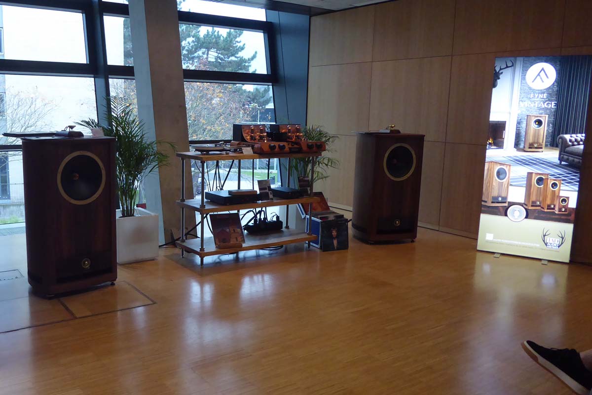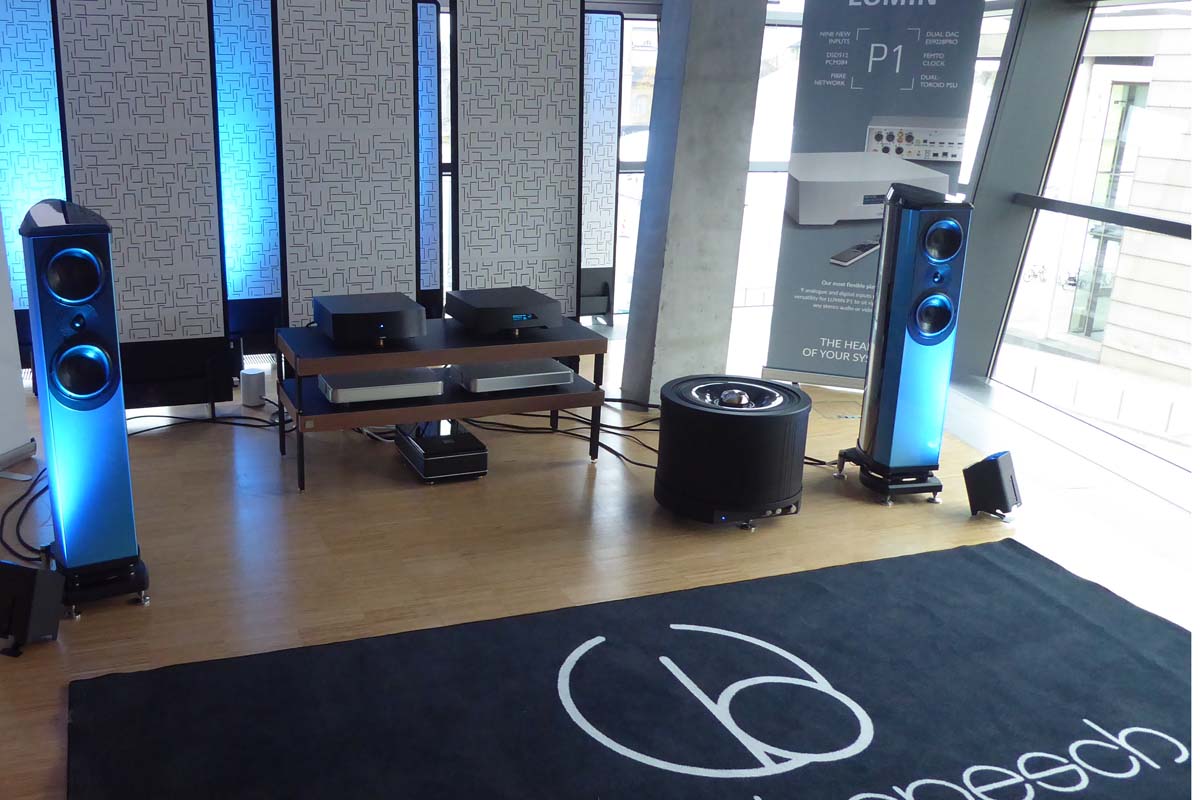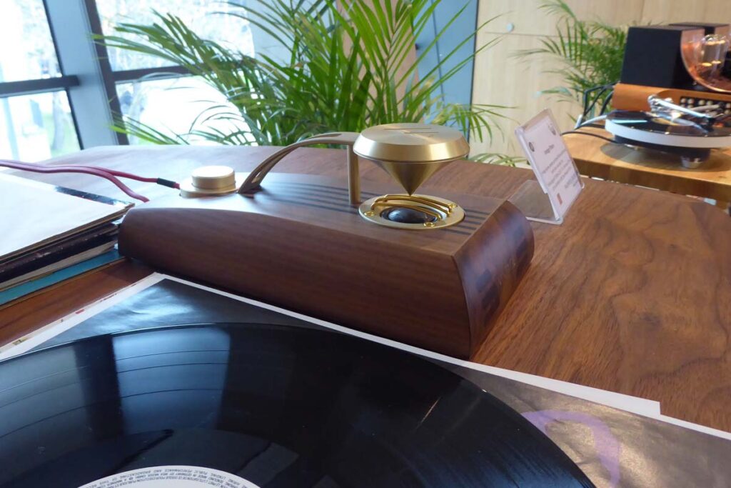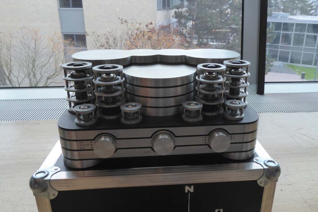 In der Erdgeschossebene sind spektakuläre Lautsprecher ausgestellt, u. a. die scheinbar einer Unterwasserwelt entsprungene Nautilus und eine gewaltige Magnepan 307. Neben Bekanntem entdeckte ich auch Hersteller mit überraschend neuen Ansätzen wie z. B. Mapu mit aktiven Breitbandlautsprechern in getöpferten Keramikgehäusen oder die belgischen Ilumnia mit innovativen sickenlosen Treibern.