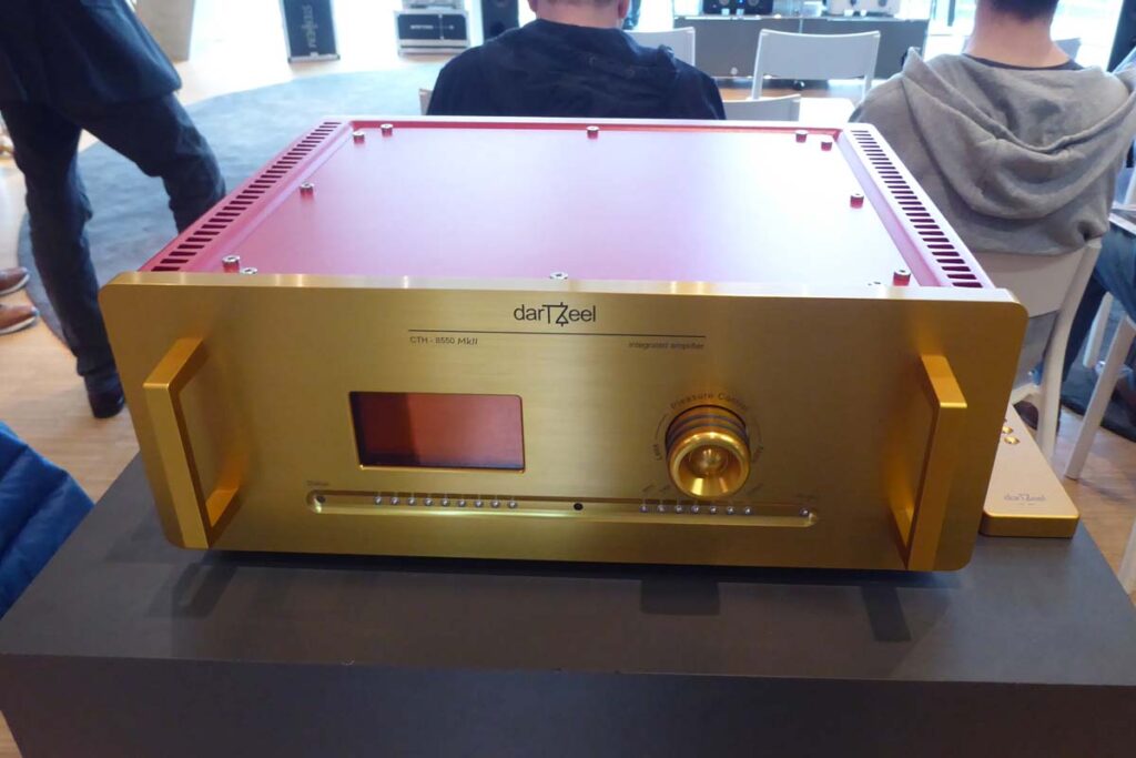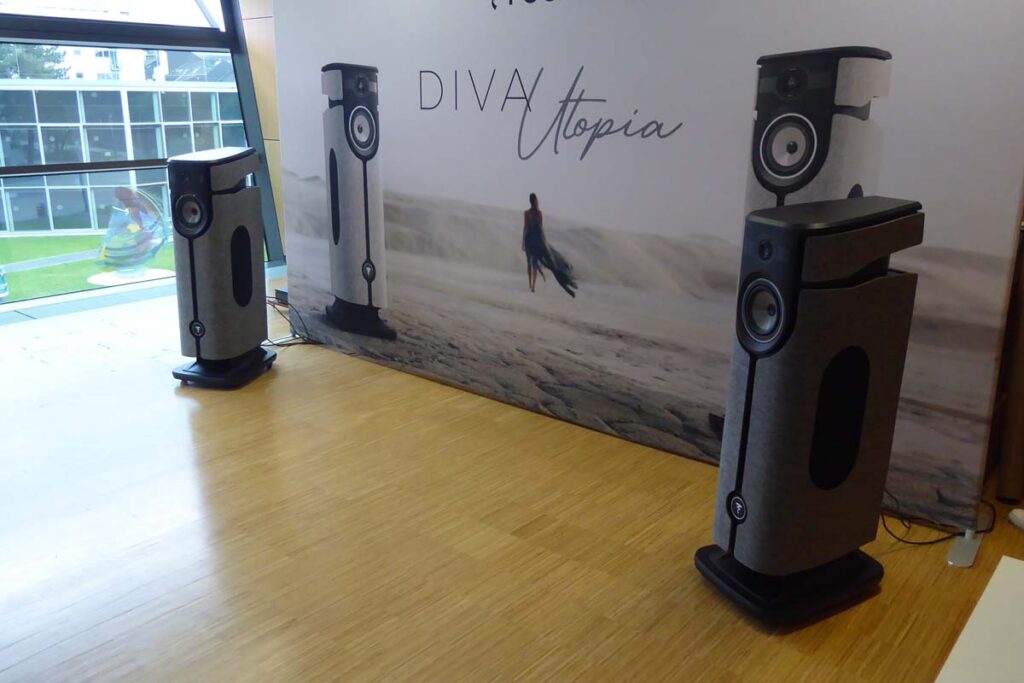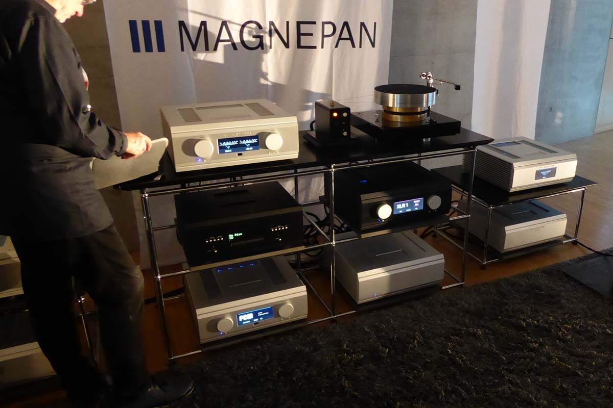 Die Raumbezeichnungen der zweiten Ebene lasen sich wie die Zutatenliste von High-End-Elektronik: Carbonium, Titanium, Argentum, Aurum. Im „Platinum“ hatte TAD Gewaltiges von Fyne Audio und Unison Research aufgebaut. Der Absolute 845 und die Vintage 15 beeindruckten mit ihrem perfekt verarbeiteten Edelholzgehäuse und nicht zuletzt durch ihre Physis. Im „Argentum“ präsentierte Focal die nagelneue Diva Utopia, mit der die Gerätegattung All-in-One auf ein neues Level gebracht wird. Der mit Naim-Elektronik befeuerte Aktivlautsprecher kann fast alles, und das kabellos. Einen ausführlichen Eindruck vom Klang zu erhalten war leider nicht möglich, da der Hörraum ständig voll besetzt war; mein erster kurzer Eindruck war jedoch äußerst überzeugend. Allein, die in grauem Filz gehaltene Gehäuseoberfläche erinnerte mich sehr an den Fußboden meiner Studentenbude … Geschmackssache. Die Vorführung von Magnepan-Flächenstrahlern an Musical-Fidelity-Komponenten habe ich leider verpasst. Schade, die hätten mich sehr interessiert, zumal Jürgen Reichmann immer mit guter Musikauswahl aufwartet.