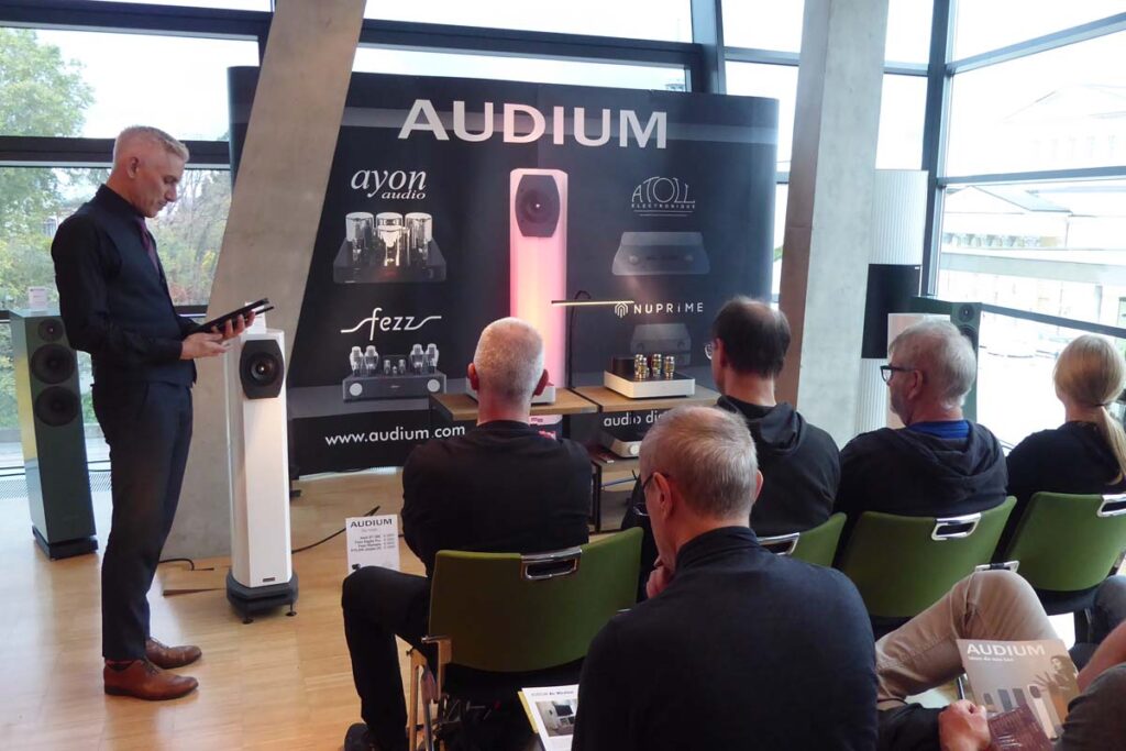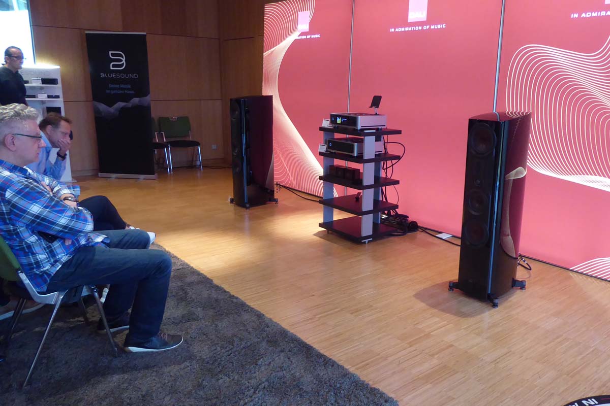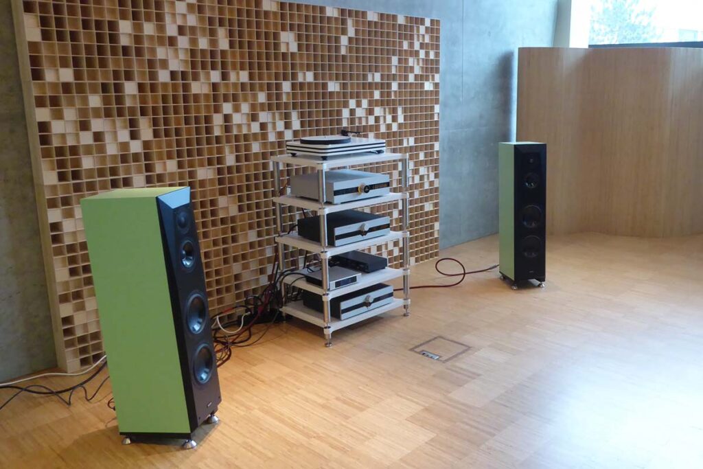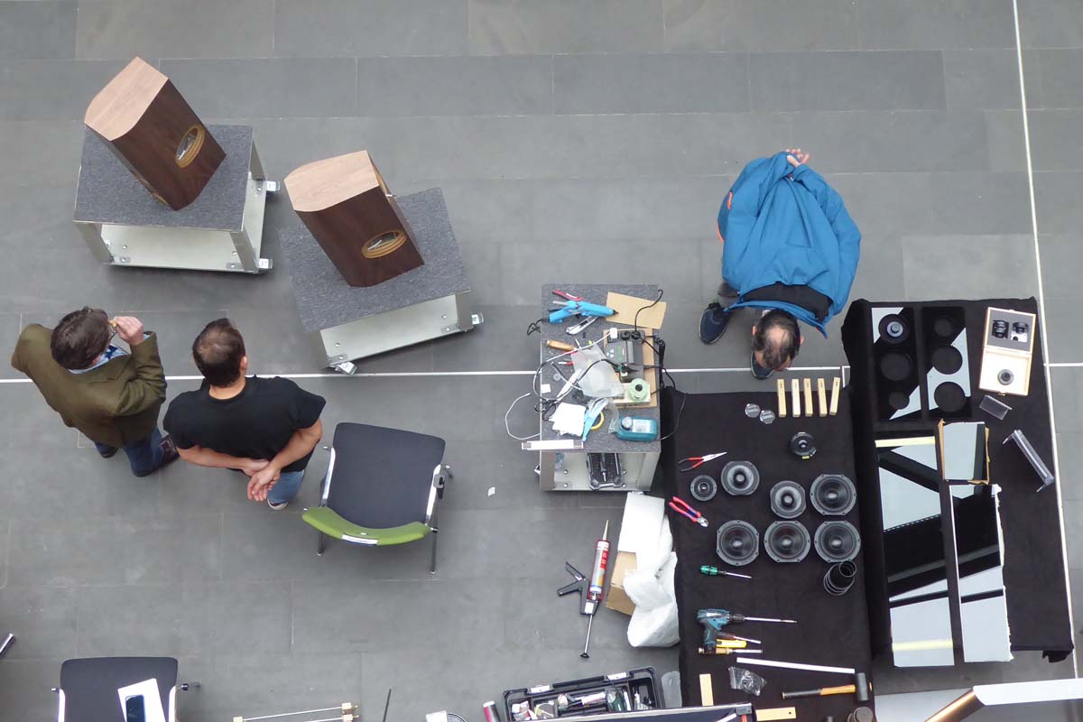 Audio Physic wartete mit einer besonderen Demonstration auf. An Ort und Stelle wurde ein Paar der eleganten „Tempo“-Standlautsprecher montiert. Das stieß auf reges Interesse beim Publikum, zumal sämtliche Fragen vom gut gelaunten Audio-Physic-Team beantwortet wurden.