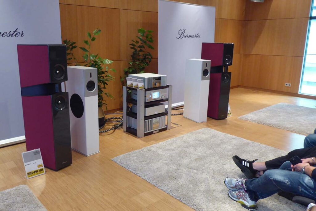Mit Raumteilern, diversen Diffusoren und Bassabsorbern brachte IDC dem „Xenon“-Raum ausgezeichnete akustische Manieren bei. Großmeister Karl-Heinz Fink persönlich war kompetenter DJ der Vorführungen (die übliche Messe-Hitparade blieb dem Publikum erspart, danke!). Der neueste Zugang seiner Epos-Linie, der Standlautsprecher ES-28N, klang an der recht preiswerten Canor-Kette perfekt. Auch wenn es etwas abgedroschen klingen mag: Mehr braucht der audiophile Genießer eigentlich nicht. Obwohl – die nächste Vorführung bei Burmester ließ mich wieder zweifeln. Die neue Standbox BX100 an großem Elektronikbesteck spielte atemberaubend, allerdings auch zu einem ebenso atemberaubenden Preis. Wieder auf der Erde gelandet, nämlich im „Oxygenium“ beim Berliner Audium-Vertrieb wurden die eigenen „Audium“-Lautsprecher im Wechsel mit den neu in den Vertrieb aufgenommenen Pylon-Boxen an Fezz-Röhrenverstärkern vorgeführt. Eine rundum äußerst musikalische Erfahrung mit durchweg preiswerten Komponenten.