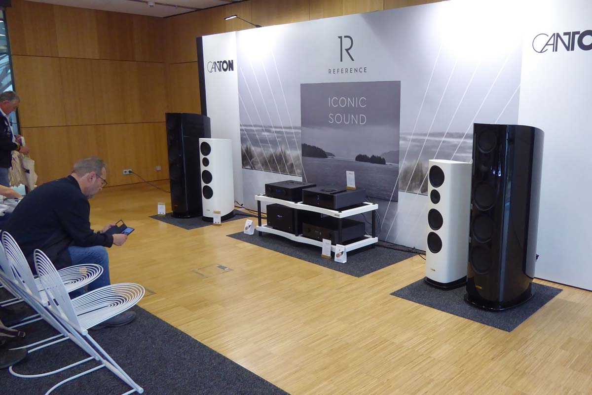 DALI zeigte die neue, bis ins letzte Detail absolut hochwertig verarbeitete Epikore-Serie, und schon das Anschlussterminal offenbarte sich als Preziose. Kraftvoll, natürlich und feinzeichnend war die Klangcharakteristik des vorgeführten Lautsprechers. Ähnliches trifft auf die im Nachbarraum spielende Canton Reference zu, wobei vor allem auch die dynamischen Fähigkeiten hervorzuheben sind. Die Preisgestaltung von Canton halte ich im Vergleich für ausgesprochen günstig.