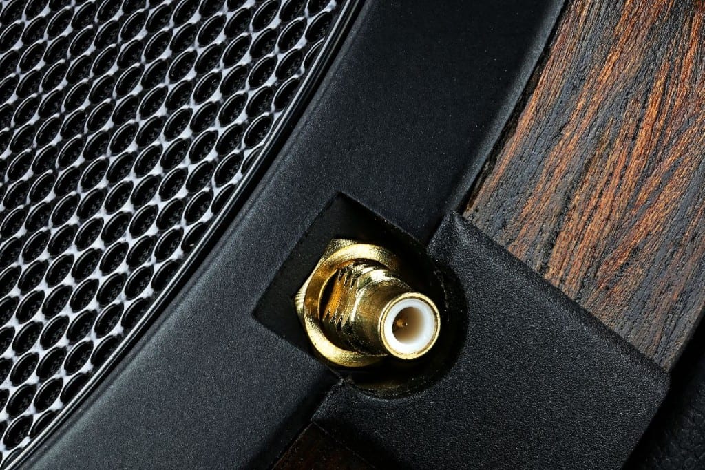 Der HiFiman HE-560 gehört zur Familie der magnetostatischen Kopfhörer. In der Regel besteht diese Spezies aus echten Diven, was ihre Anforderungen ans Umfeld angeht. Bei HiFiman jedoch wollte man den Magnetostaten (auch) reif für den Außeneinsatz machen und arbeitete daher noch einmal gründlich an der Folie und den Magneten. Mit Erfolg: Größere Leiterbahnen auf einer leichteren Folie und stärkere Magneten nur auf der vom Ohr abgewandten Seite der Membran sorgen für eine geringere Impedanz und geringeres Gewicht. Praxisfreundliche 35 Ohm sollten auch die meisten Miniplayer vor keine ernsthaften Probleme stellen. Die leichtere Folie hingegen soll die Detailtreue des Hörers steigern und ihn auch für ein highendig ambitioniertes Publikum interessant machen. Das eigentliche Gehäuse des HE-560 besteht nun aus einem Mix aus Kunststoff und Holz, das rein nach klanglichen Gesichtspunkten ausgesucht worden sein soll. Immerhin kann ich schon jetzt feststellen, dass der HiFiman auf meinem Kopf so bequem sitzt wie kein großer Kopfhörer vor ihm. Die Kabel sind austauschbar, die entsprechenden Buchsen leicht nach vorne geneigt, woran ich überhaupt nur die rechte von der linken Seite des Kopfhörers unterscheiden kann; eine etwas deutlichere Markierung wäre sicher kein Problem.