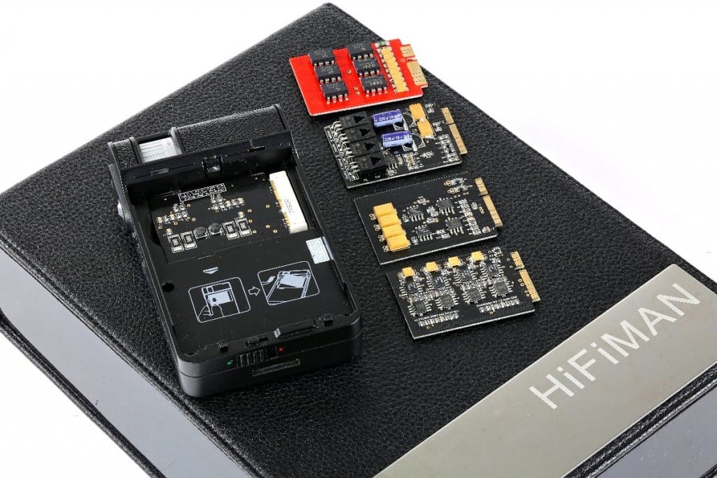 Der Mediaplayer HiFiman HM-901 ist ein handliches, aber durchaus komplexes System aus Abspieleinheit, Verstärker- und Speicherkarten. Flexibel kann man sich den Spieler mit unterschiedlichen Verstärkermodulen konfigurieren, ganz so, wie es dem eigenen Anforderungsprofil entspricht. Für direkt spielende In-Ear-Hörer gibt es eine leisere, dafür aber extrem rauscharme Verstärkung. Das Standardmodul versorgt idealerweise Hörer mit der üblichen Impedanz um 32 Ohm. Auch schwieriger anzutreibende Kopfhörer mit höheren Impedanzen sowie symmetrisch verkabelte Modelle können ebenfalls von eigens entwickelten Verstärkerkarten passend versorgt werden. Deren Wechsel geht im HM-901 recht einfach vonstatten: Rückwand und Akku entnehmen und dann einfach das lediglich in eine Kontaktleiste eingeschobene Verstärkermodul austauschen.