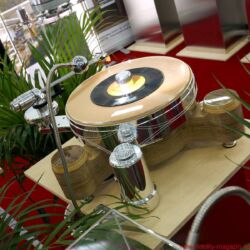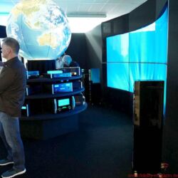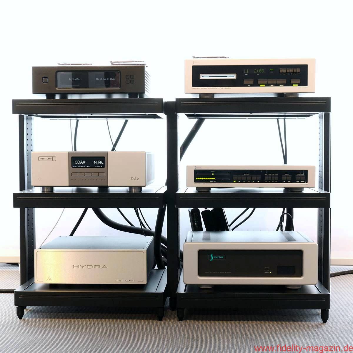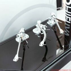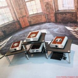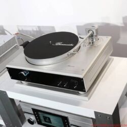 Burmester-CEO Andreas Henke enthüllt den ersten Plattenspieler des Hauses. Der ausgesprochen burmestertypische 175 wirkt zwischen den ebenfalls neuen Lautsprechergiganten fast schon harmlos. Doch der 60-Kilogramm-Dreher macht seinem Familiennamen alle Ehre, der überkomplett ausgestattete Burmester 175 (Tonarm, MC-System und Phonoentzerrer sind serienmäßig an Bord) wischt bereits mit den ersten Tönen alle Bedenken beiseite. KEF empfängt seine Gäste mit chilligen Electro-Klängen, die über die riesigen Muon den Raum fluten. Ach, wirklich? Natürlich sorgt bei KEF-Markenbotschafter Johan Coorg nicht das überarbeitete Flaggschiff für satten Sound, sondern die kleine LS50Wireless, die uns schon in FIDELITY Nr. 31 begeisterten. Und ganz grundsätzlich geht es um die neue Q-Serie, die nicht nur besser als die Vorgänger ist, sondern auch günstiger. Bei AVID feiert man gleich drei neue Tonarme nach dem bewährten „Good/Better/Best“-Prinzip, das Aufsehen erregende Topmodell Oxytone entsteht großteils unter Zuhilfenahme eines 3D-Druckers und erlaubt eine VTA-Justage bei laufendem Betrieb. Zudem zeigt Conrad Mas den (relativ) kompakten und (relativ) preisgünstigen Lautsprecher Reference 4 sowie einen Vollverstärker namens Sigsum, der in die gleiche Kategorie fällt. Überhaupt scheinen bärenstarke Vollverstärker mit knapp (oder auch satt) fünfstelligem Preisschild en vogue zu sein. Jan Sieveking wuchtet für ein Foto den großen, schweren Audia Flight FLS-10 in die Auslage, bei der Harman Luxury Group erläutert Philipp Krauspenhaar den nunmehr auch mit Phonozweig lieferbaren Mark Levinson Nr. 585.5 bis ins Detail. T+A hat seine erfolgreiche HV-Familie erst kürzlich erweitert, kann diese nun auch in allen Farben des RAL-Regenbogens liefern. Für ausreichend Bodenhaftung sorgt bei T+A wiederum eine neue „Gala“-Komponente, die beinahe alles kann.
