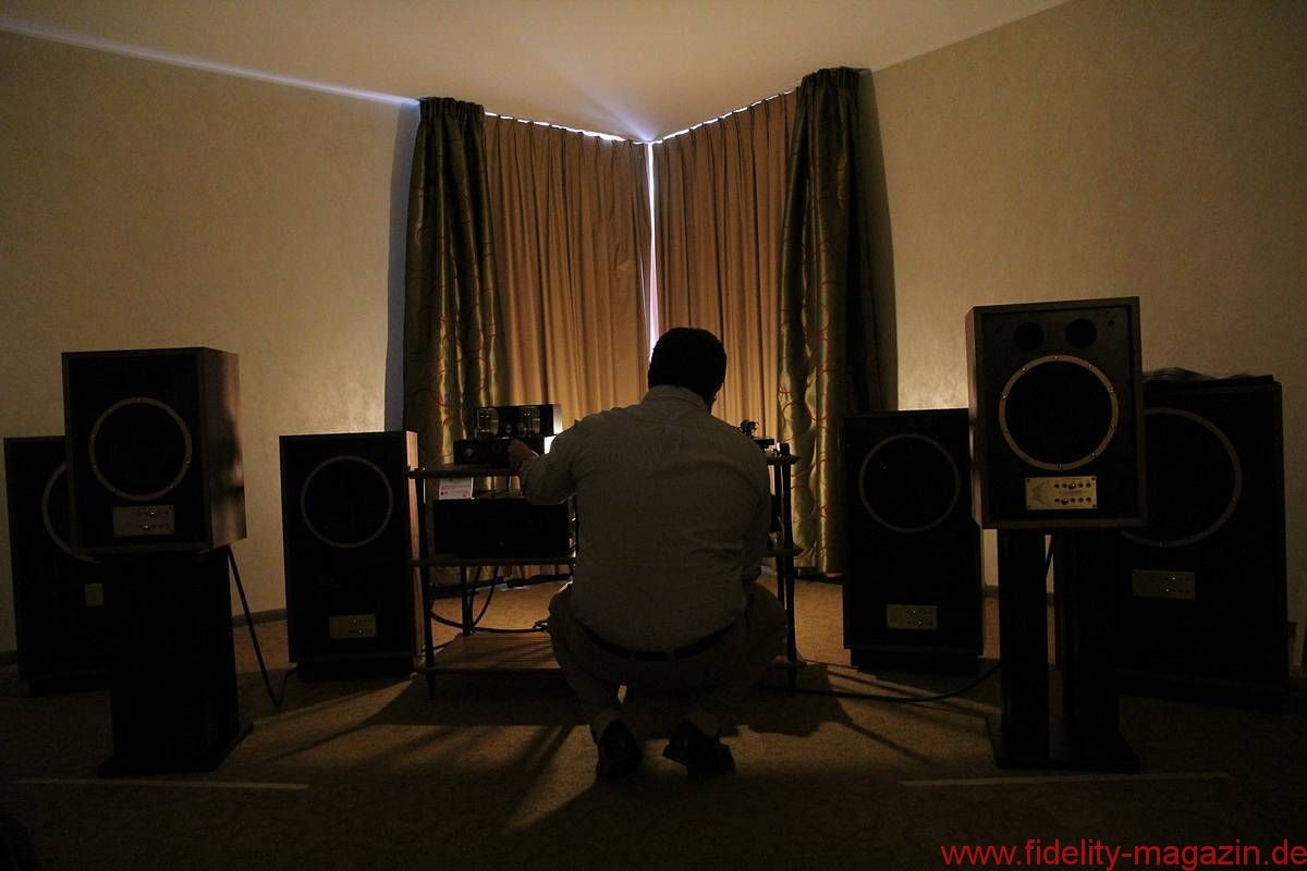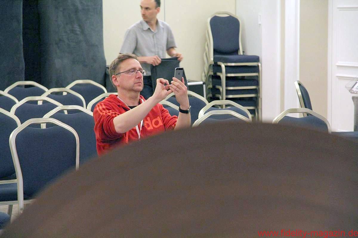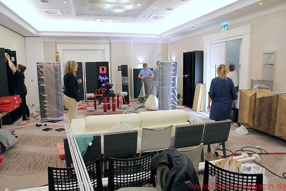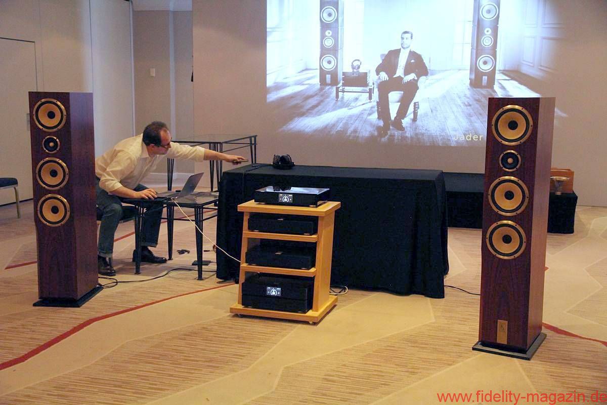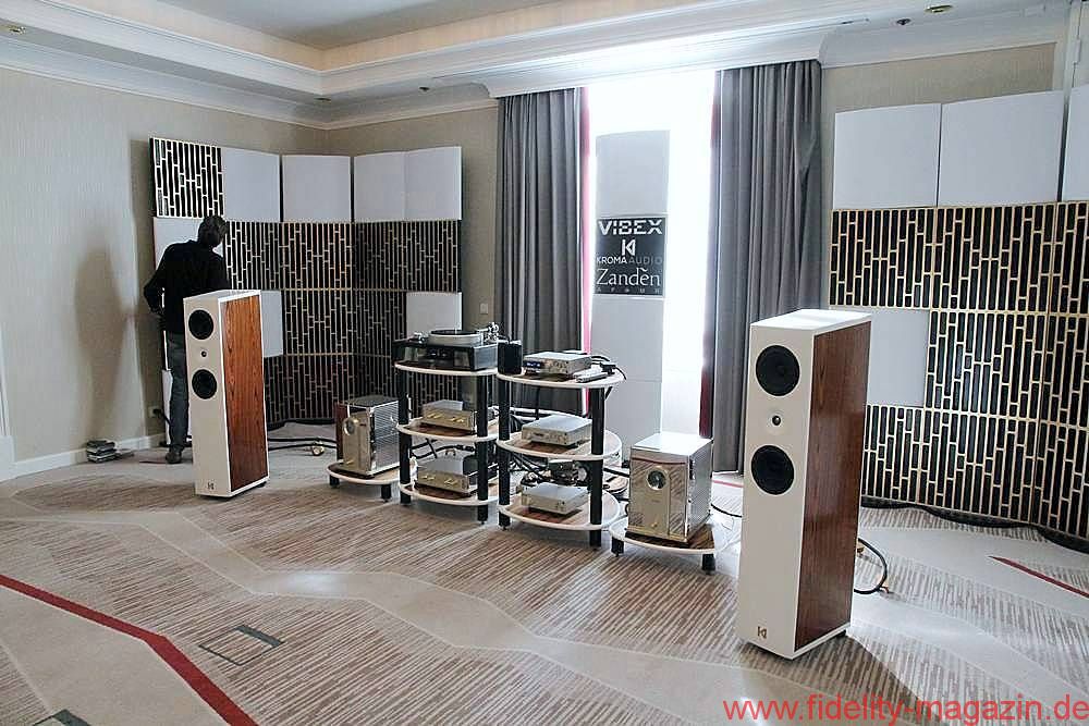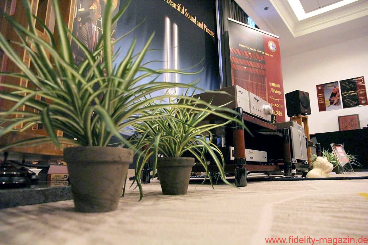 Bei der parallel stattfindenden hifideluxe im Hotel Marriott kommt der Klang-Kulinariker in mir zu seinem Recht. Davon abgesehen, dass durch das angenehm hektikfreie Hotelambiente eine ganz andere Atmosphäre als im summenden Messe-Bienenstock MOC herrscht, wirken auch die Hörräume besser präpariert, obwohl sie deutlich kleiner sind. Zunächst bleibe ich bei QUAD hängen, wo man den Beweis antritt, dass auch in der kleinsten Hütte noch Platz für einen großen Flächenstrahler ist, wenn man ihn nur richtig aufstellt und einpegelt.