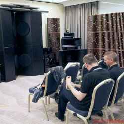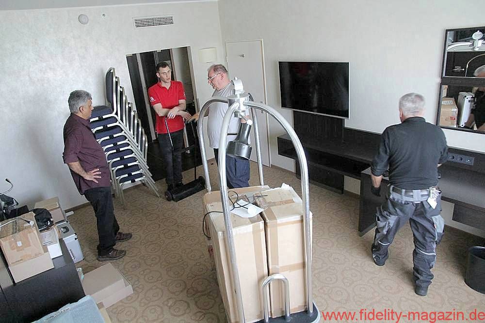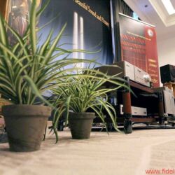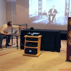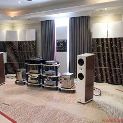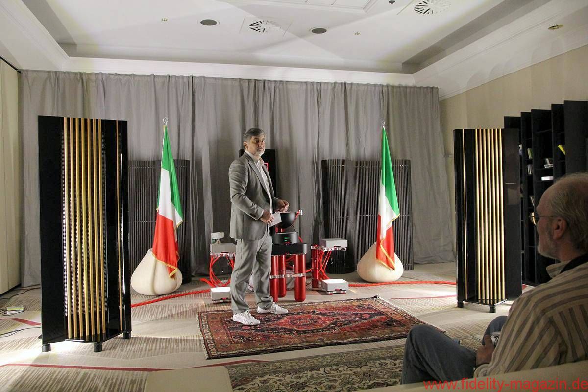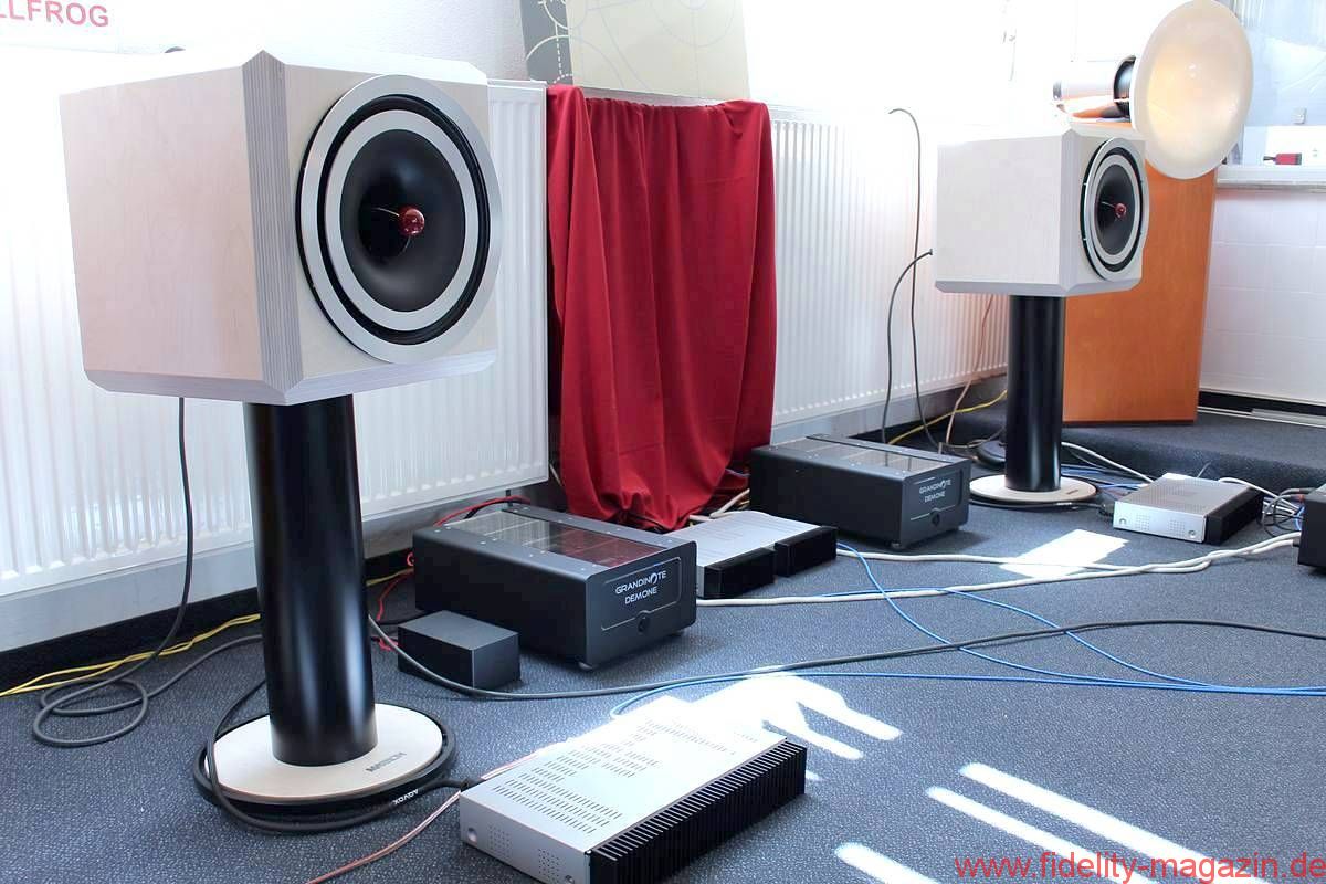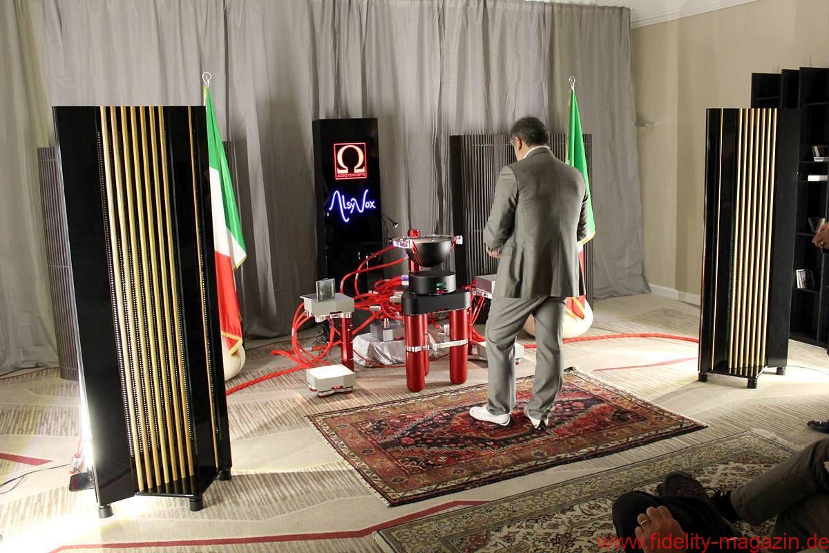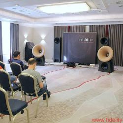 Bei der parallel stattfindenden hifideluxe im Hotel Marriott kommt der Klang-Kulinariker in mir zu seinem Recht. Davon abgesehen, dass durch das angenehm hektikfreie Hotelambiente eine ganz andere Atmosphäre als im summenden Messe-Bienenstock MOC herrscht, wirken auch die Hörräume besser präpariert, obwohl sie deutlich kleiner sind. Zunächst bleibe ich bei QUAD hängen, wo man den Beweis antritt, dass auch in der kleinsten Hütte noch Platz für einen großen Flächenstrahler ist, wenn man ihn nur richtig aufstellt und einpegelt.