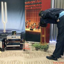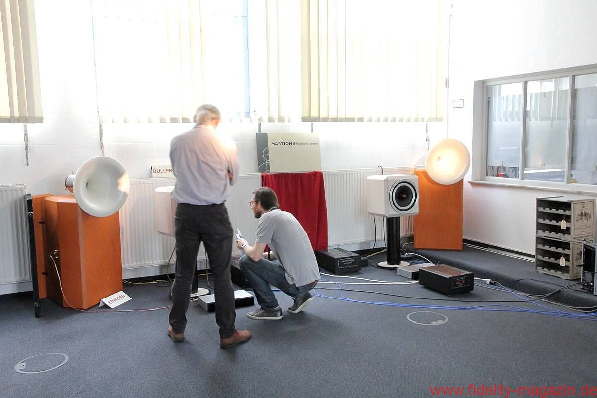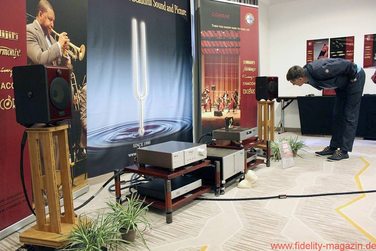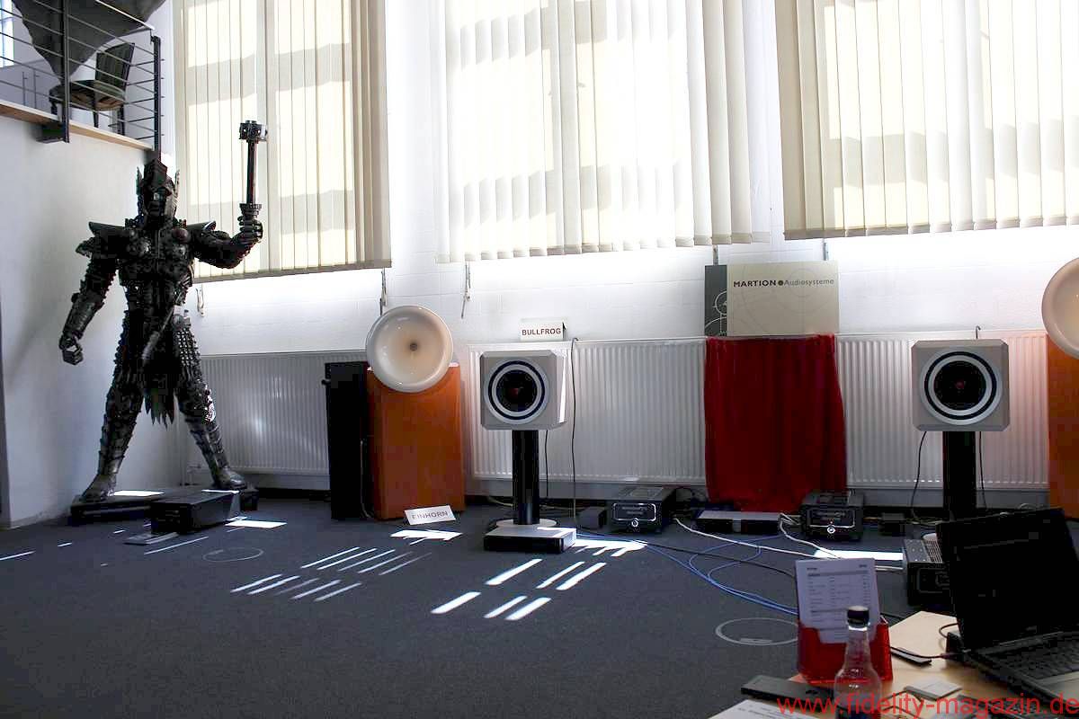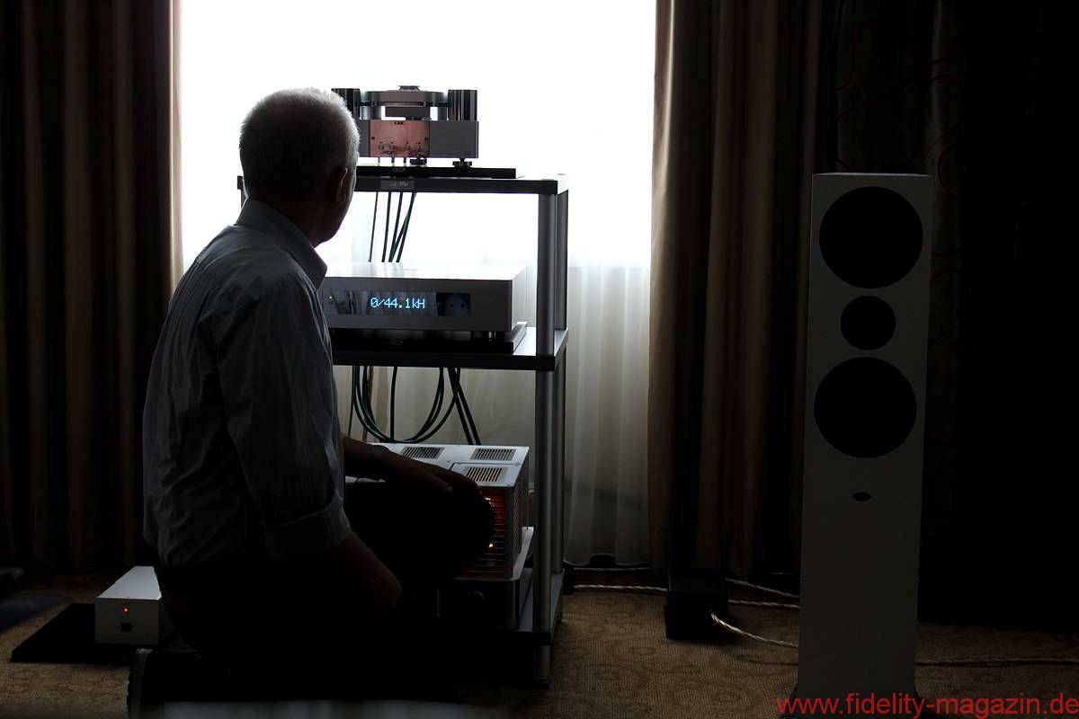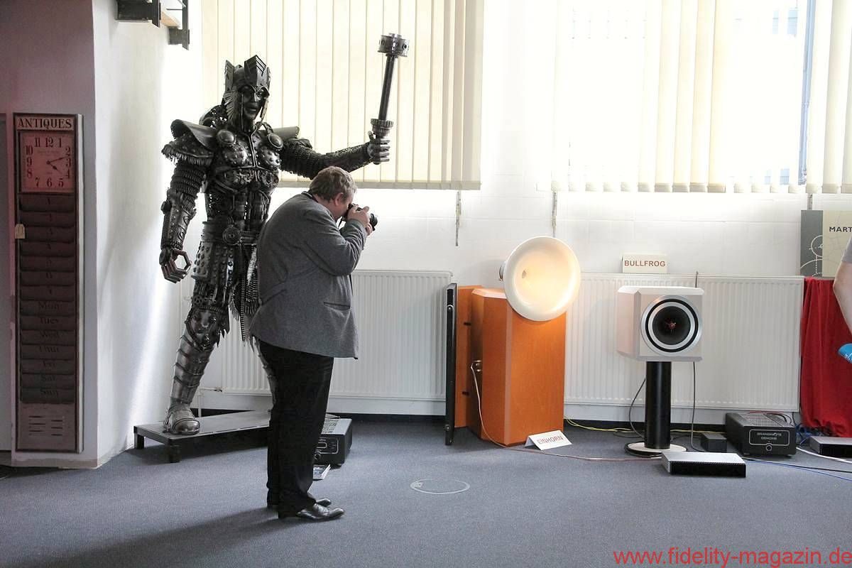 Mit Peter Qvortrup unterhalte ich mich ausgiebig über sein neues Plattenlabel „Audio Note Music“ und gönne mir dann das Live-Erlebnis mit dem Debütkünstler des neuen Labels. Der junge kanadische Cellist Vincent Bélanger startet gerade eine weltweite Karriere und dürfte in absehbarer Zeit mit den Großen seiner Zunft wie Mstislaw Rostropowitsch, Misha Maisky oder Alban Gerhardt genannt werden. Im Hörraum spielt der angenehm unprätentiöse, aber ungemein charismatische Saitenzauberer mittels akribisch aufgebauter Audio-Note-Elektronik mit sich selber im Duo und meint augenzwinkernd, dass er gegen die Stereoanlage „jederzeit gewinnt“. Worum es freilich nicht geht. An sich soll demonstriert werden, wie ähnlich hochwertige Wiedergabe und Live-Erlebnis sein können, wie eng sie sich einander annähern, wenn „alles passt“. Und das gelingt der Audio-Note-Crew mit ihrem Star Bélanger auch ziemlich perfekt. Von diesem Highlight abgesehen ist es am Ende die erfreulich hohe Durchschnittsqualität, die mir im Gedächtnis bleibt. Gefühlt habe ich dieses Mal auf beiden Messen deutlich mehr gute Anlagen mit mehr guter Musik als im letzten Jahr gehört. Was vielleicht auch damit zu tun hatte, dass in Sachen Testmaterial eine gewisse Retro-Bewegung zu spüren ist: weg von inhaltsarmen, dezidierten „Hörtest-Scheiben“ hin zu spannender, echter, gerne auch einmal kantiger Musik. Mein persönliches Highlight? Die Vorführung der überarbeiteten Martion Bullfrog mit fulminant gut klingender skandinavischer Orgelmusik in der dem MOC benachbarten „Motorworld“. Wer jemals selbst versucht hat, eine große Kirchenorgel in Frequenzumfang und schierer Größe aufzunehmen und später überzeugend wiederzugeben, weiß um die Komplexität und Problematik dieses Unterfangens. Was in München per hochauflösender FLAC-Datei aus den Bullfrog-Würfeln strömte, erschien mir so echt, dass ich eine Gänsehaut bekam. Ein Erlebnis, das ich gerne all jenen bescheren würde, die allen Ernstes glauben und kolportieren, alle Stereogeräte würden gleich klingen. Hearing is believing …