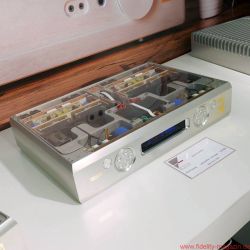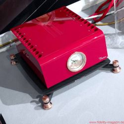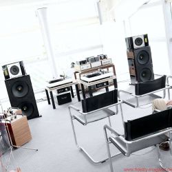 Sehr überzeugend die technoid-eleganten Neuigkeiten bei Technics, die in geradezu idealer Weise die optisch so prägenden letzten Jahrzehnte des 20. Jahrhunderts mit neuzeitlichem Technik-Anspruch verbinden. Nachgerade zeitlos dann das Hineinschnuppern bei Ulrich Benda, dessen „Audiophile Architektur“ ein überwältigend vielfältiges und –flächiges, beliebig kombinierbares Akustik-Ambiente bietet und mit Lautsprechern von Live Act Audio und Synästec-Elektronik auch überzeugend demonstriert. Man kann sich kaum sattsehen an all den verschiedenen Oberflächen – und satthören eigentlich auch nicht. Im fliegenden Wechsel rockt das LAA-Team den Raum mit seinen großen, größeren und größten Lautsprechern. Das allergrößte Schallwandler-Besteck der Messe bietet aber weder Live Act Audio, noch Cessaro oder Tidal Audio, dessen sensationelles Spitzenmodell La Assoluta sowohl (Audio-)Juweliere als auch dessen Kundschaft zum Träumen anregt. Nein, das größte Dickschiff steht erwartungsgemäß wieder bei Silbatone: ein dezentes, kubikmetergroßes Kinosoundsystem, das u.a. von Silvercore, Schick und Schröder bedient wird. Ich gehe gleich mehrfach an der Suite vorbei, weil regelmäßig überfüllt. Auch knipse ich den seebebentauglichen XXXL-Subwoofer bei Ascendo („Zurück in die Zukunft“ anyone?) nur aus dem Handgelenk. Denn ich bin nun wieder reif für ein paar ausgesprochene Szene-Schönheiten. Die stehen beispielsweise bei Gato Audio oder bei Lyravox, beides Kandidaten für den elegantesten Messeauftritt. Oder bei Soulution, die ihre neue „kleine“ Serie 3 präsentieren. Erfreulich auch die Demonstration der feisten „Niagara“-Netzfilter von AudioQuest, die direkt nach der Messe in die FIDELITY-Redaktion verfrachtet werden sollen (Das hat geklappt! Anm. d. Red.). Auch dürfen wir dann einen neuen, bezahlbaren Standlautsprecher von Triangle in unseren Räumlichkeiten begrüßen, der bei Reichmann Audiosysteme unübersehbar mitten im Raum steht. Jürgen Reichmann serviert anlässlich der „kleinen Preissensation“ aus Frankreich ein kleines, feines Gläschen Riesling, das kurz darauf bei Canton mit einer kleinen, eiskalten Coke kombiniert wird – wer kann einem Ingo Hansen in voller Tuning-Fahrt schon etwas abschlagen …