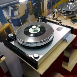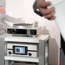 Wirklich aufregend sind einige Neuigkeiten bei Pro-Ject: vom Einsteiger-Plattenspieler mit Upgrade-Optionen ohne Ende über diverse „Beatles“-Editionen bis zum glamourösen, streng limitierten Sondermodell zum 175. Jubiläum der Wiener Philharmoniker, das aus Originalmaterialien für den Instrumentenbau gefertigt wird. Gleich nebenan am riesigen, wie immer geschmackvoll arrangierten ATR-Stand freut sich Ortofon-Vordenker Leif Johannsen über eine erweiterte SPU-Familie. Doch auch EMT-Chef Jules Limon hat ein neues System im Gepäck. Das lässt sich mit unterschiedlich schweren „Inserts“ exakt auf die mechanischen „Wünsche“ des jeweiligen Tonarms (und auf die klanglichen Vorstellungen seines Benutzers) optimieren – äußerst viel versprechend! Später lasse ich mich dann doch durch die ausgetüftelte Mechanik der ebenfalls ausgestellten Thales-Produkte ablenken … hach, herrlich.